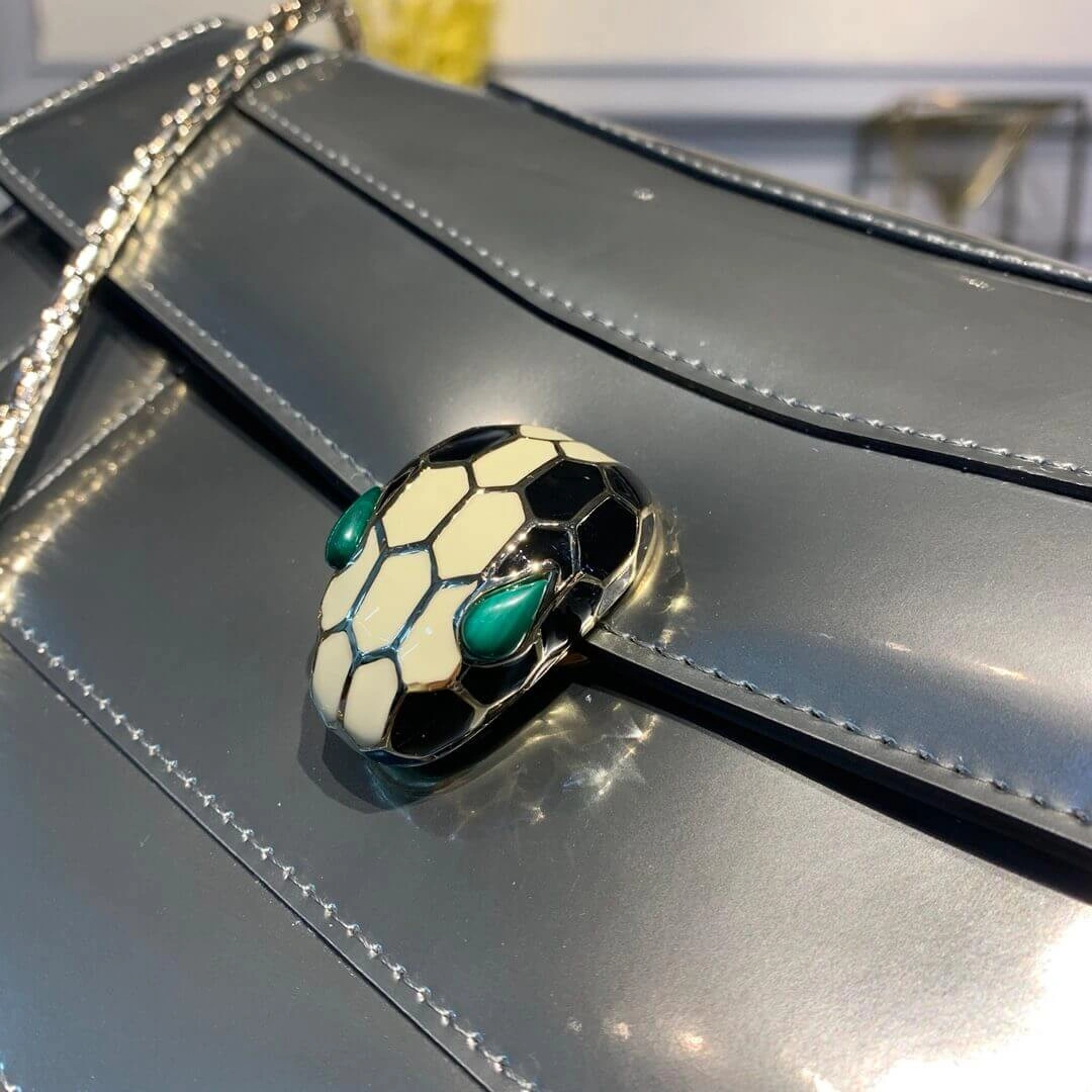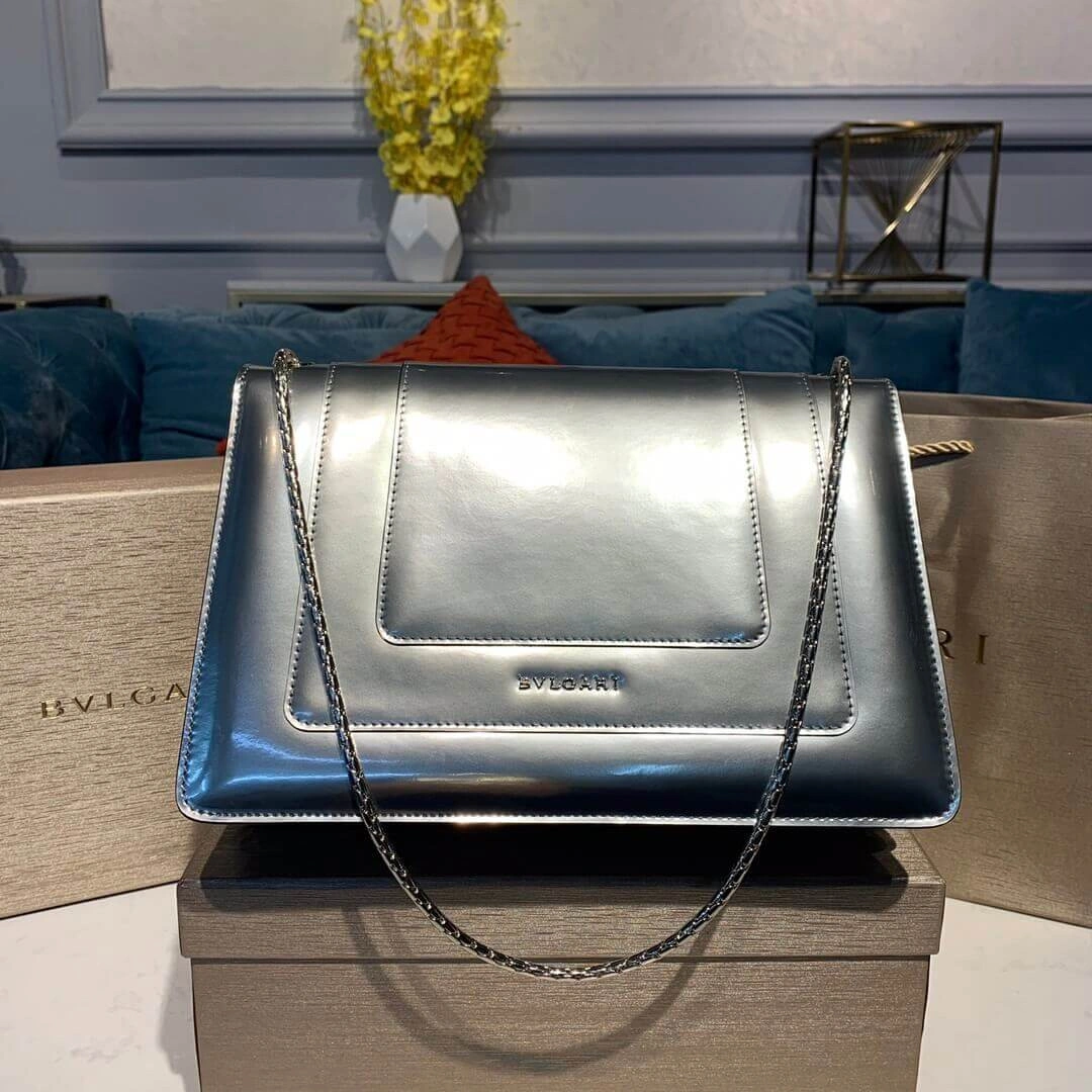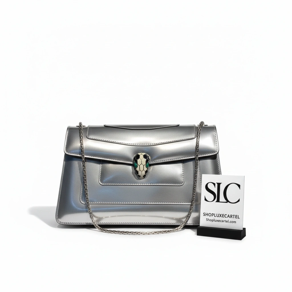 Serpent Head Flap Shoulder Bag in Silver Brushed Metallic 35106