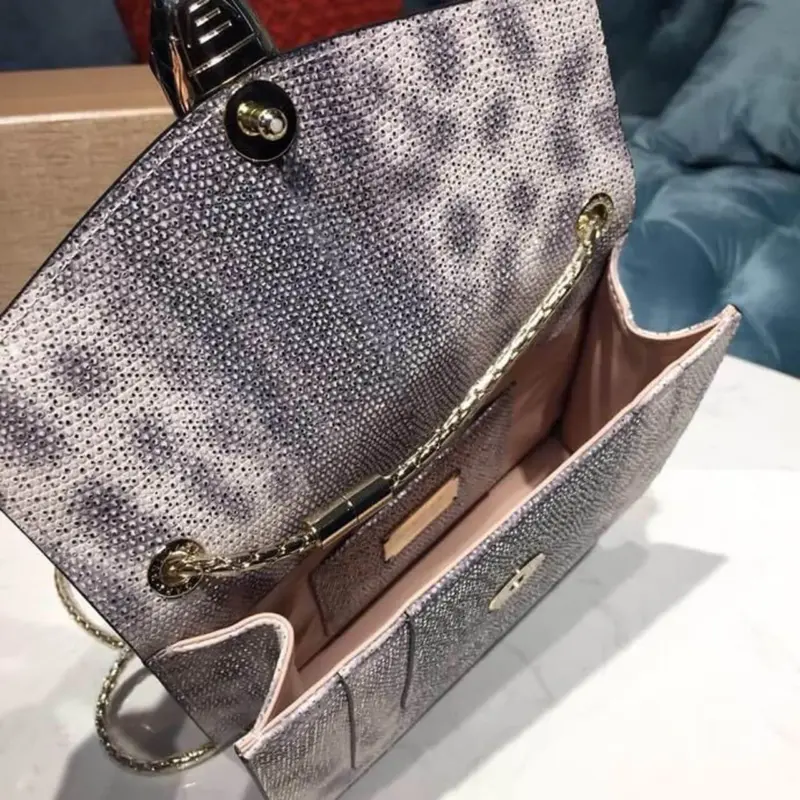 • Includes a light gold-plated chain strap inspired by a serpent’s form.