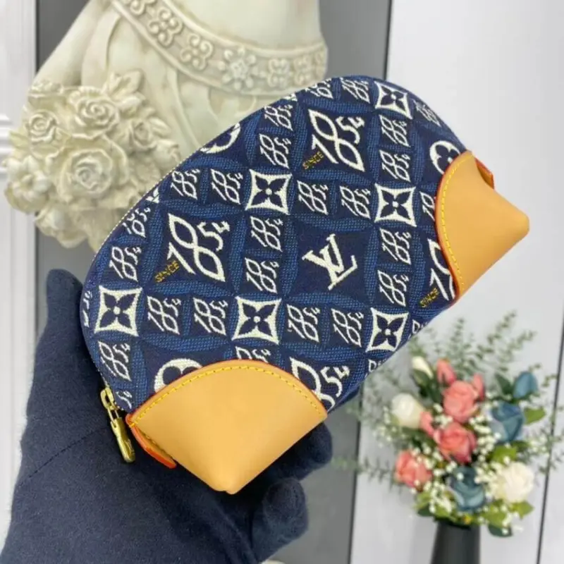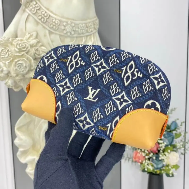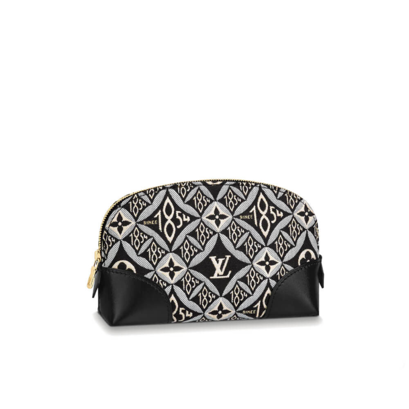 Organize your essentials in a beautifully crafted cosmetic pouch, rendered in a distinctive jacquard textile. The intricate pattern weaves together design elements and the number 1854, celebrating a rich heritage of trunk-making artistry. This compact and practical accessory is designed for both elegance and function.