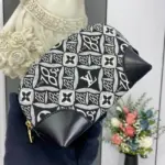 Featuring a wide, rounded zipper for easy access, this pouch opens to reveal a spacious main compartment with a washable lining, ensuring practicality for daily use. An interior flat pocket provides extra organization for smaller items, making it a perfect companion for travel or everyday luxury.