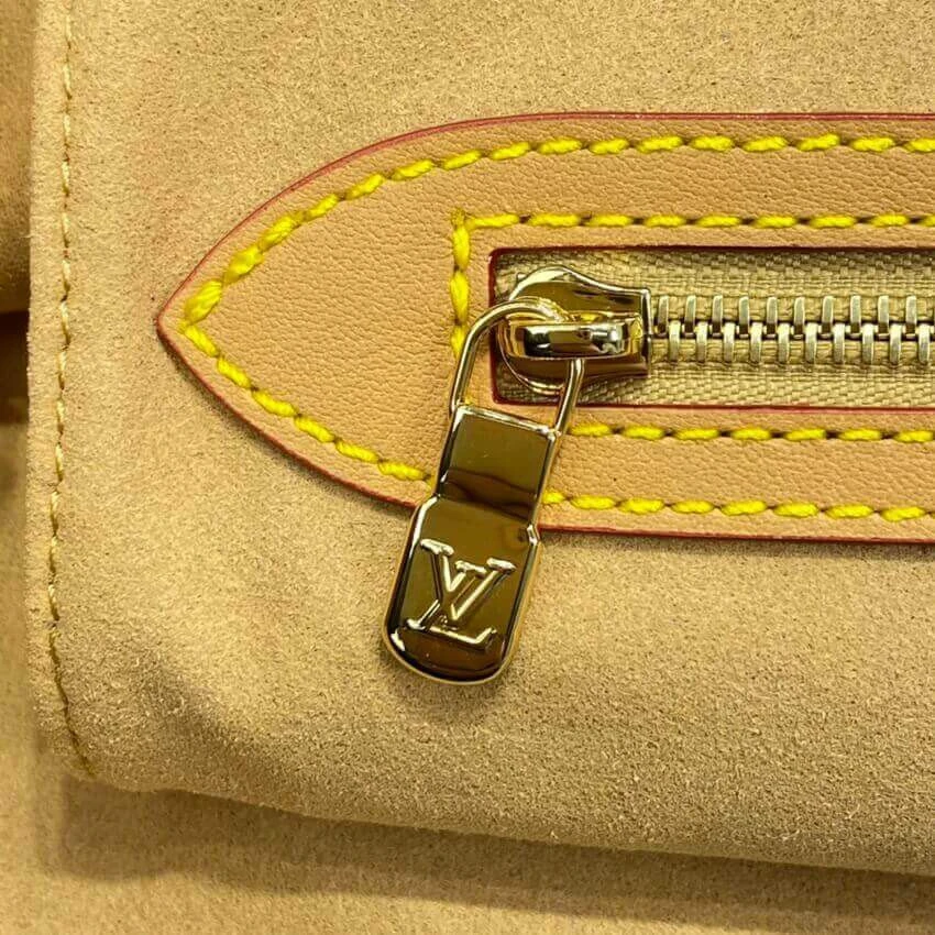 The spacious main compartment secures with a simple hook closure and features a microfiber lining for a soft touch. Functionality is enhanced with an interior flat zipped pocket, a removable zipped pouch for smaller essentials, and four side laces that allow the bag’s silhouette to be adjusted. Finished with polished gold-tone hardware, it’s a sophisticated choice for any occasion.
