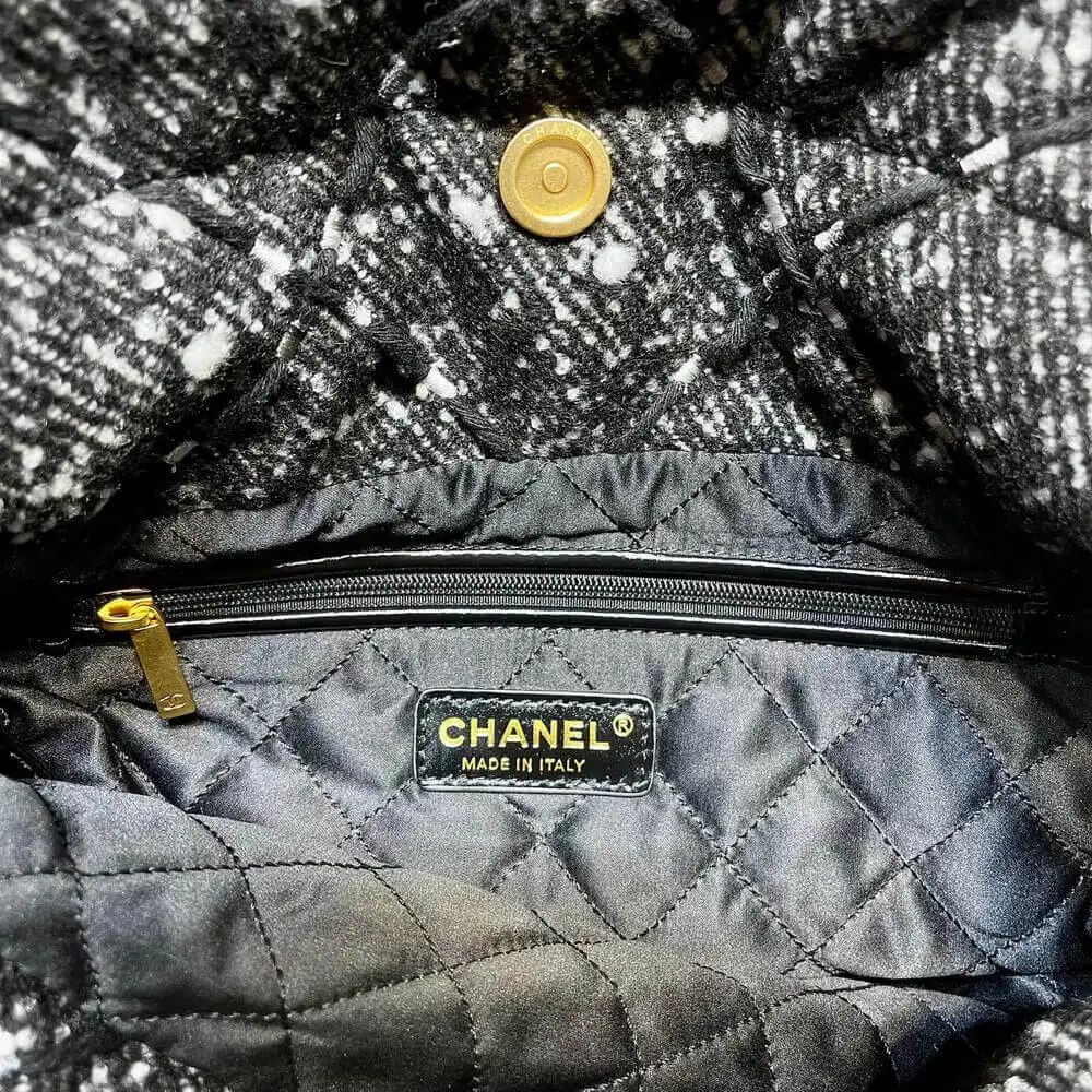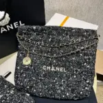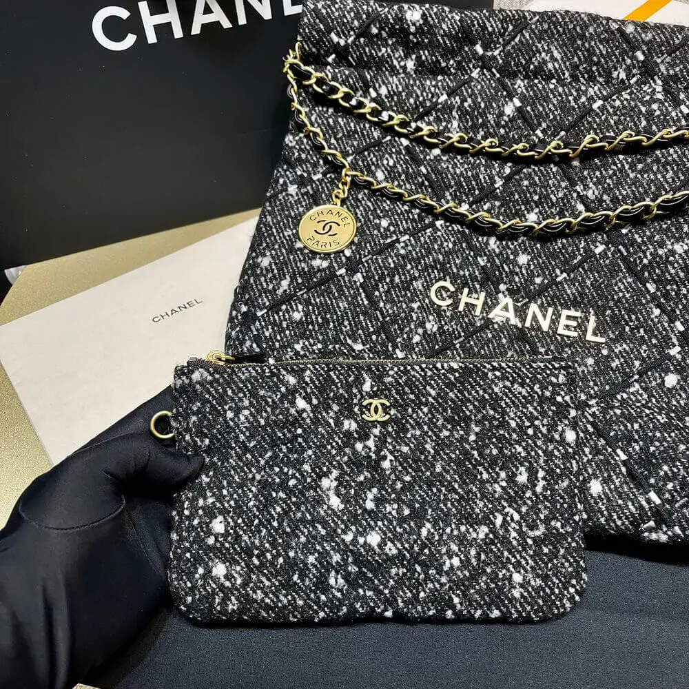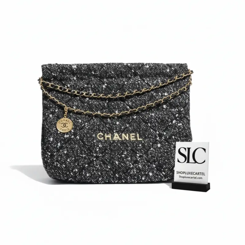 Small 22 Drawstring Tote Bag in Quilted Grey Canvas