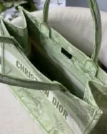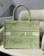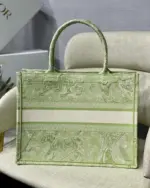 Small Book Tote with Lime Toile de Jouy Embroidery M1296