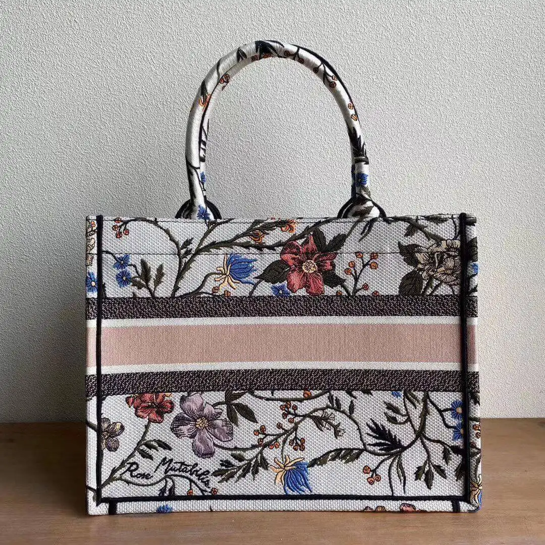 Small Book Tote with Multicolor Floral Embroidery M1296