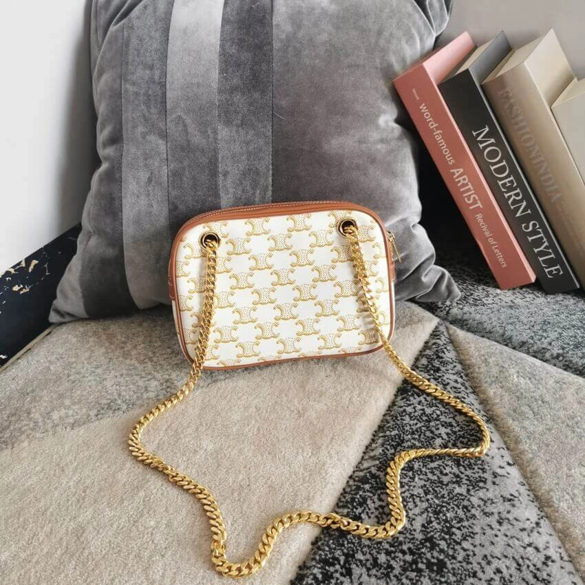The polished gold-tone hardware and versatile sliding chain strap enhance its luxurious appeal, allowing for comfortable shoulder or crossbody wear. A secure zipped closure opens to a well-organized interior, while exterior and interior pockets provide convenient storage for your daily essentials. It’s an ideal choice for elevating any outfit, from casual daywear to evening chic.
