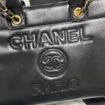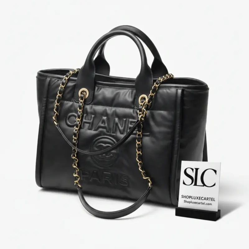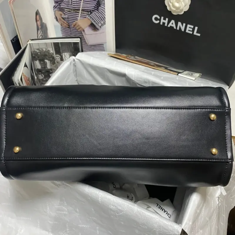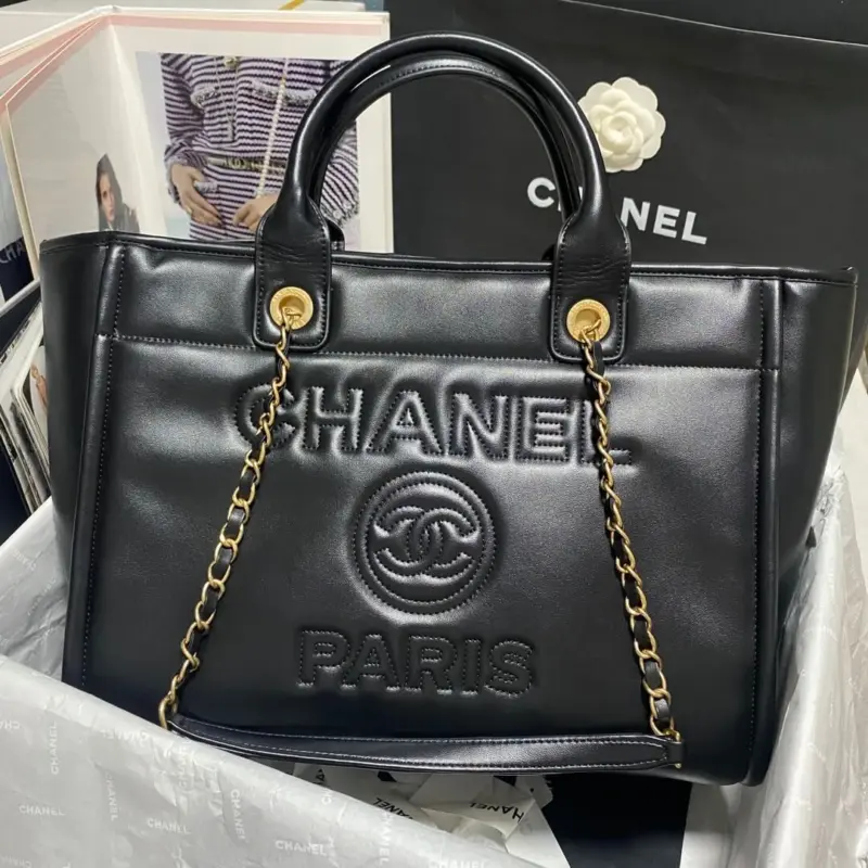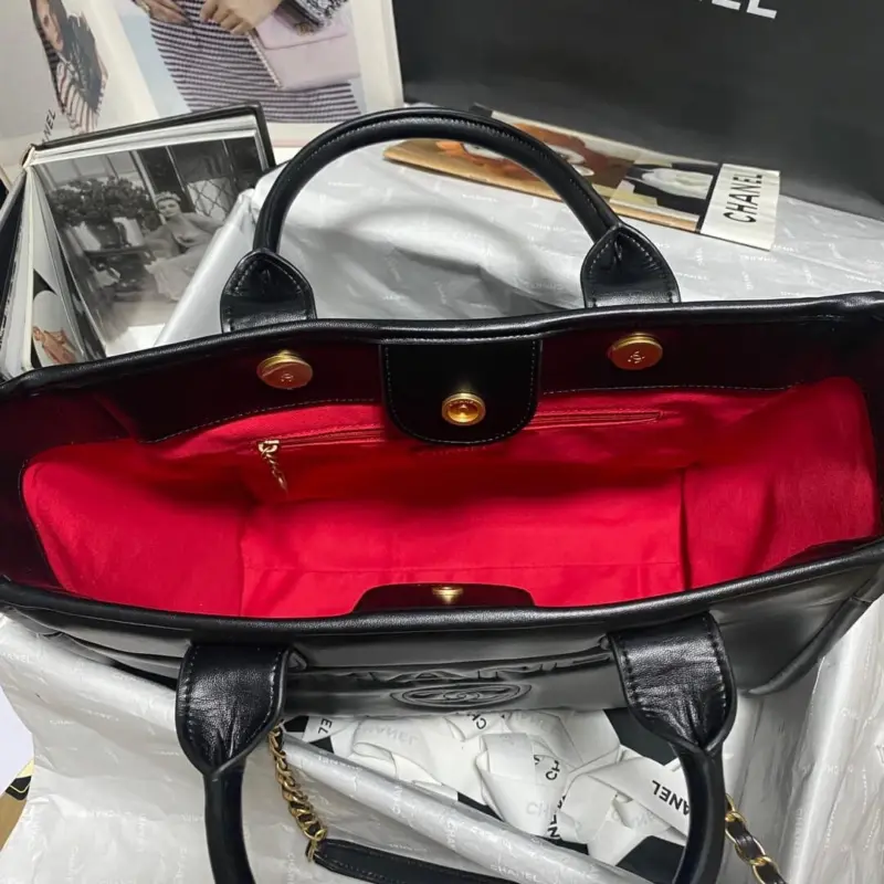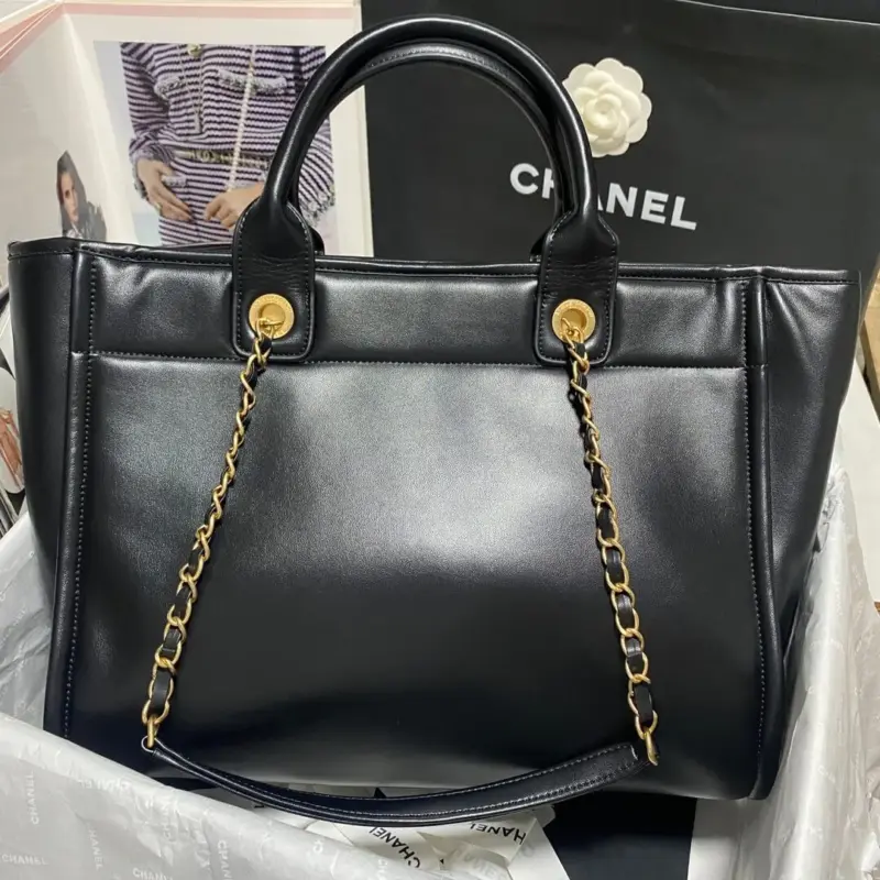 Small Deauville Style Shopping Tote in Black Calfskin AS3257