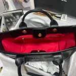 This tote is rendered in luxurious black calfskin and accented with polished gold-tone metal hardware for a refined finish. The durable yet supple leather construction ensures longevity, creating a versatile and enduring addition to any collection. This classic design is celebrated for its effortless blend of casual grace and high-end appeal.