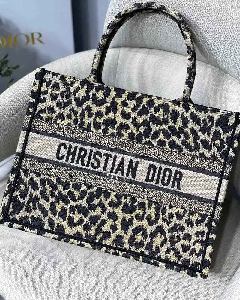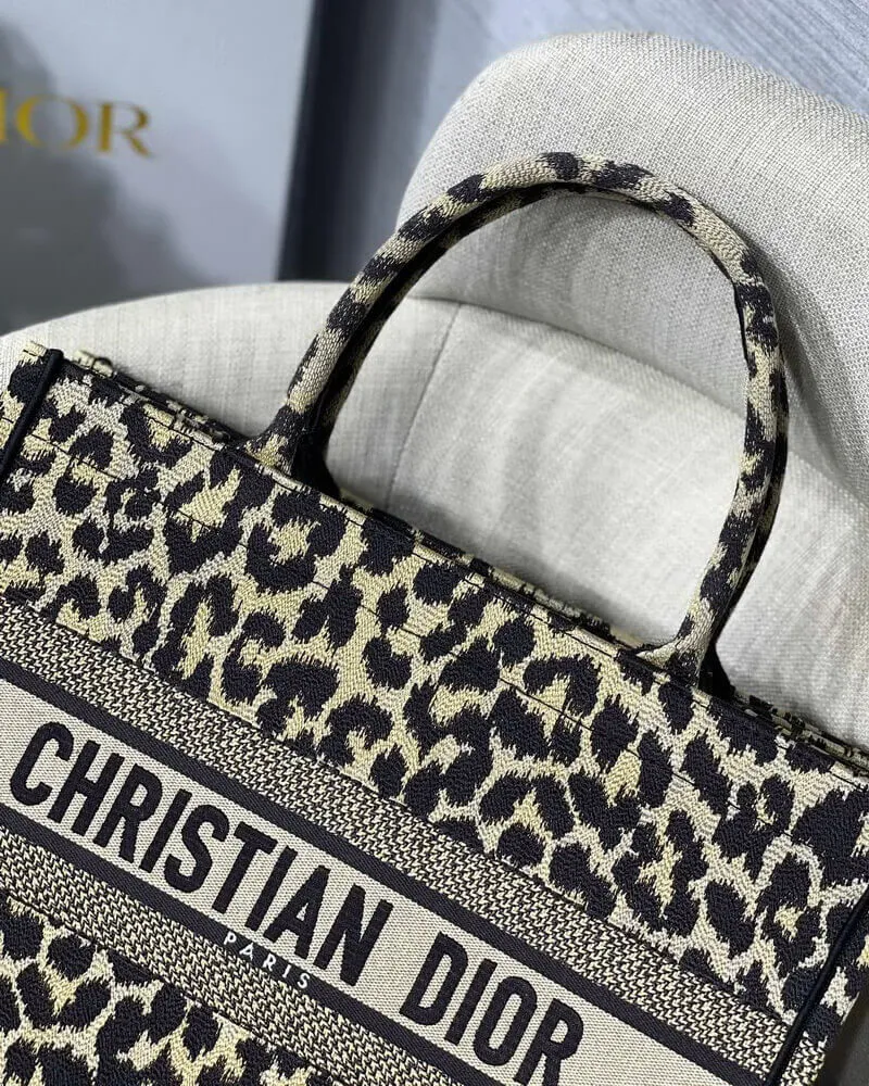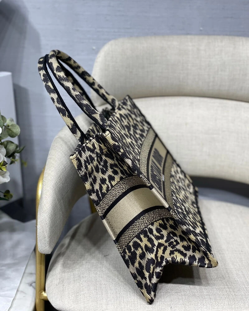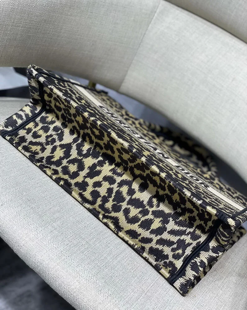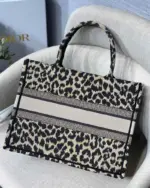 Small Embroidered Leopard Print Canvas Book Tote Bag M1296