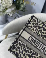 A true testament to artisanal skill, this beautiful tote bag is distinguished by its fully embroidered canvas, featuring a vibrant and stylish multicolor leopard print pattern. The bag’s structured silhouette makes it an iconic and timeless accessory, designed to hold all of your daily essentials with ease and sophistication.