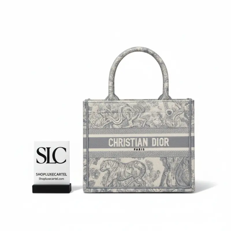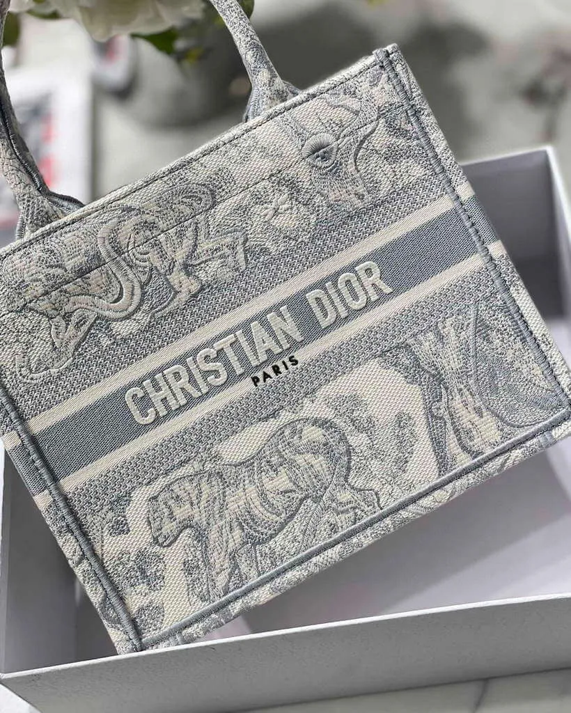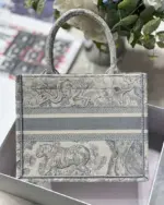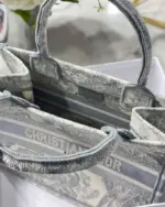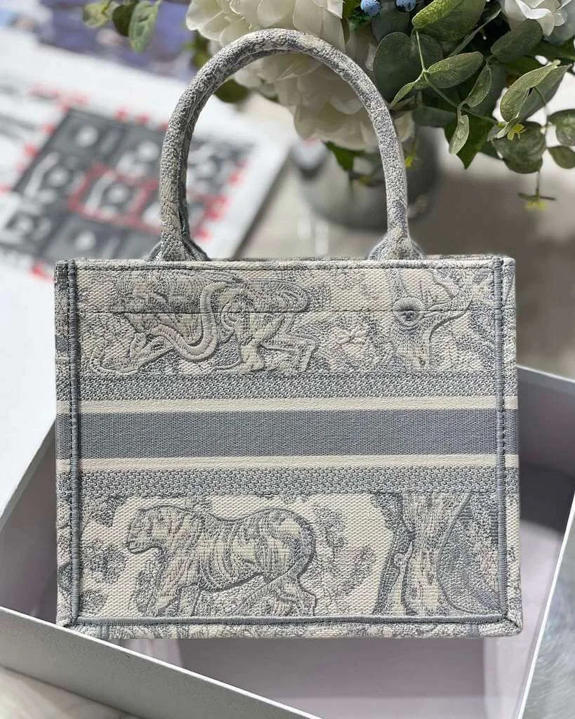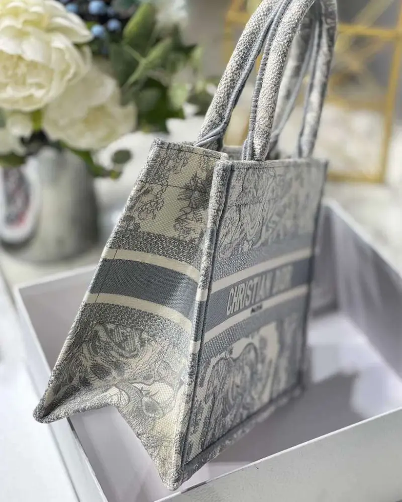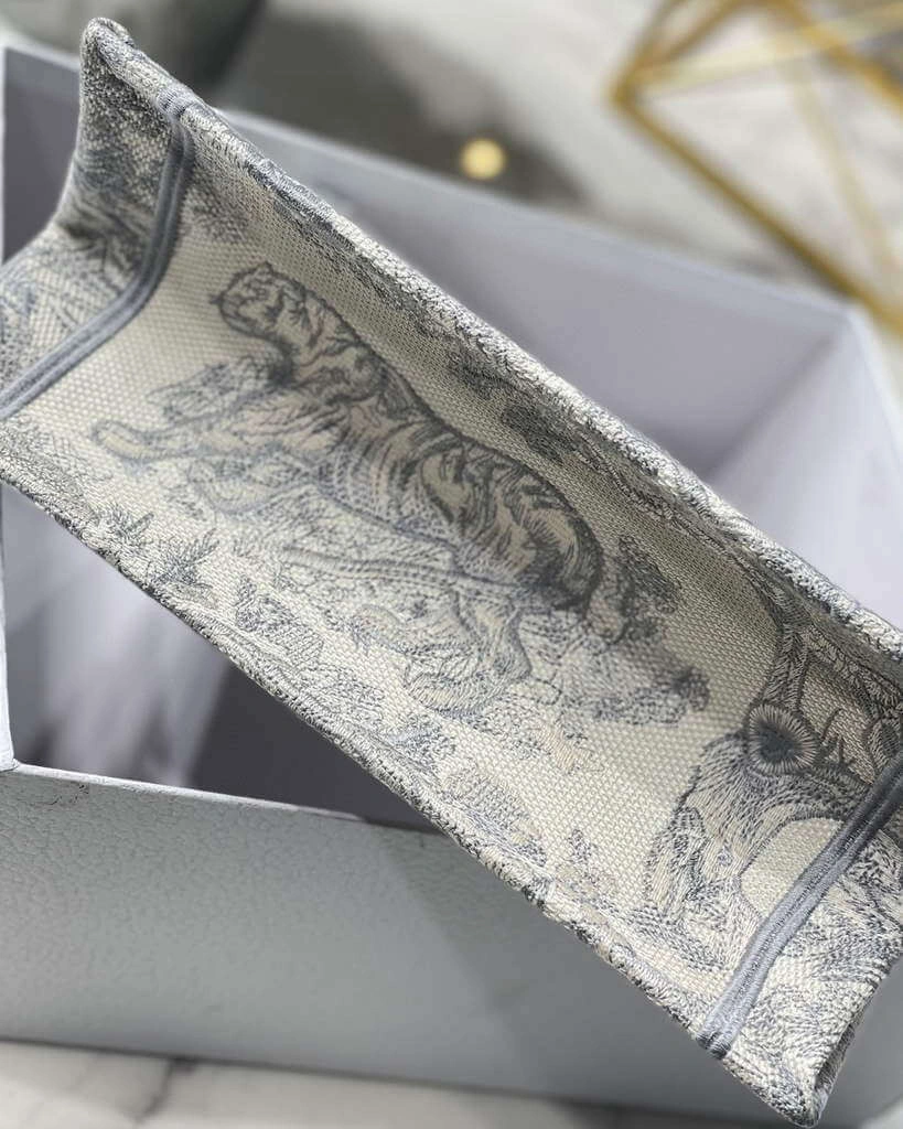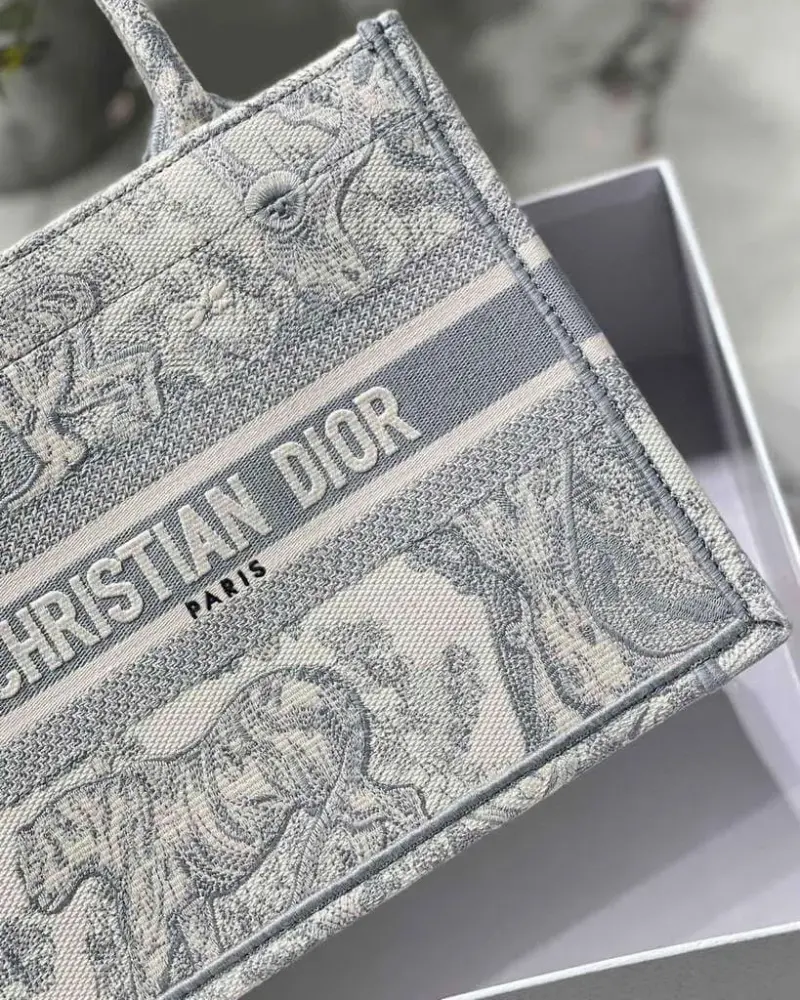Small Grey Book Tote Bag with Reverse Jouy Embroidery