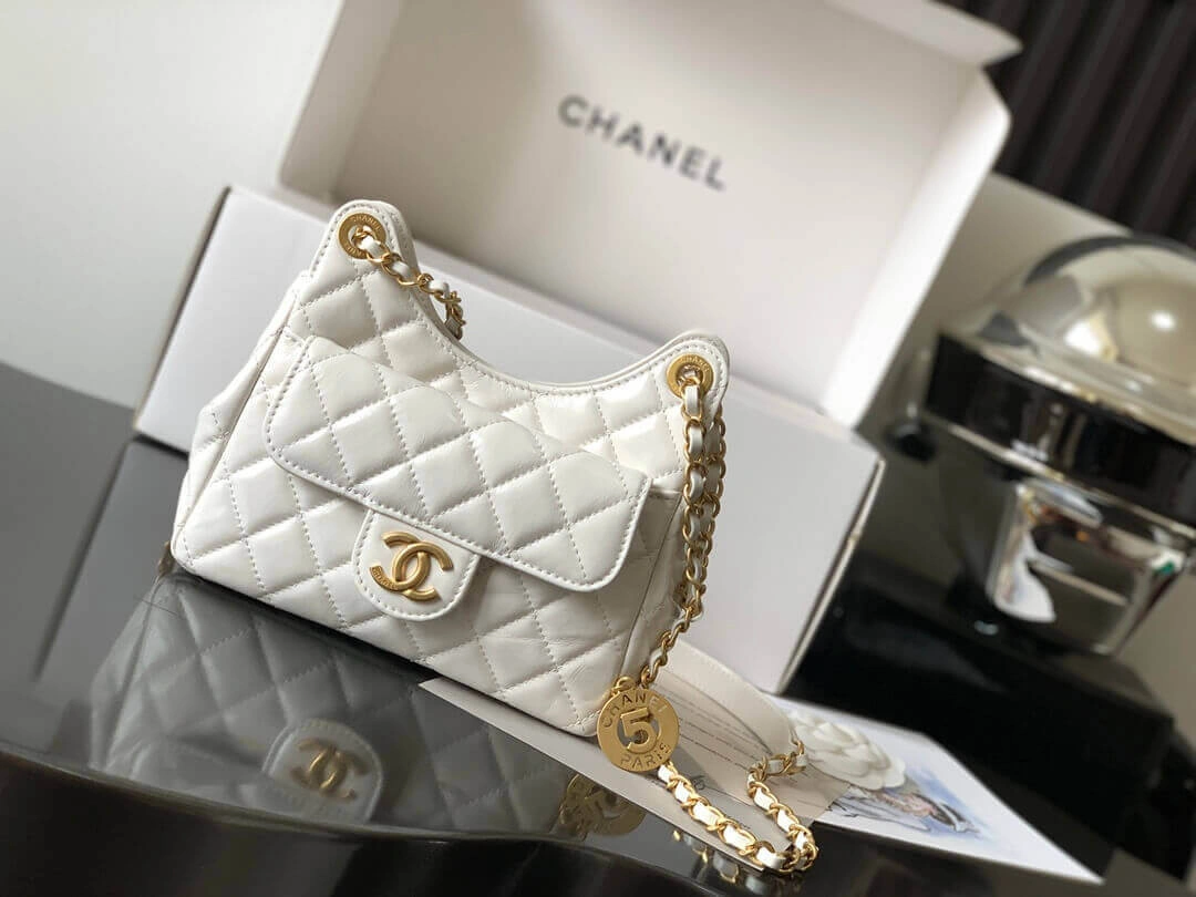 Experience effortless sophistication with this chic and versatile hobo shoulder bag. Crafted from a high-quality calfskin with a unique shiny, crumpled texture, this piece offers a touch of modern luxury to any outfit. The bag’s classic curved silhouette and compact size make it an ideal companion for both daily errands and evening occasions, providing just enough space for your essentials.