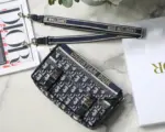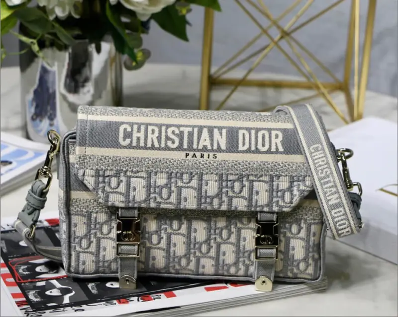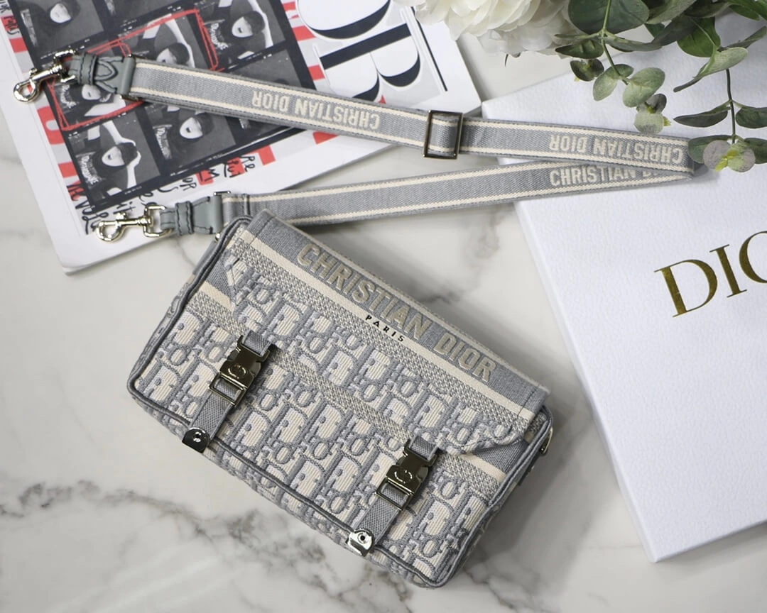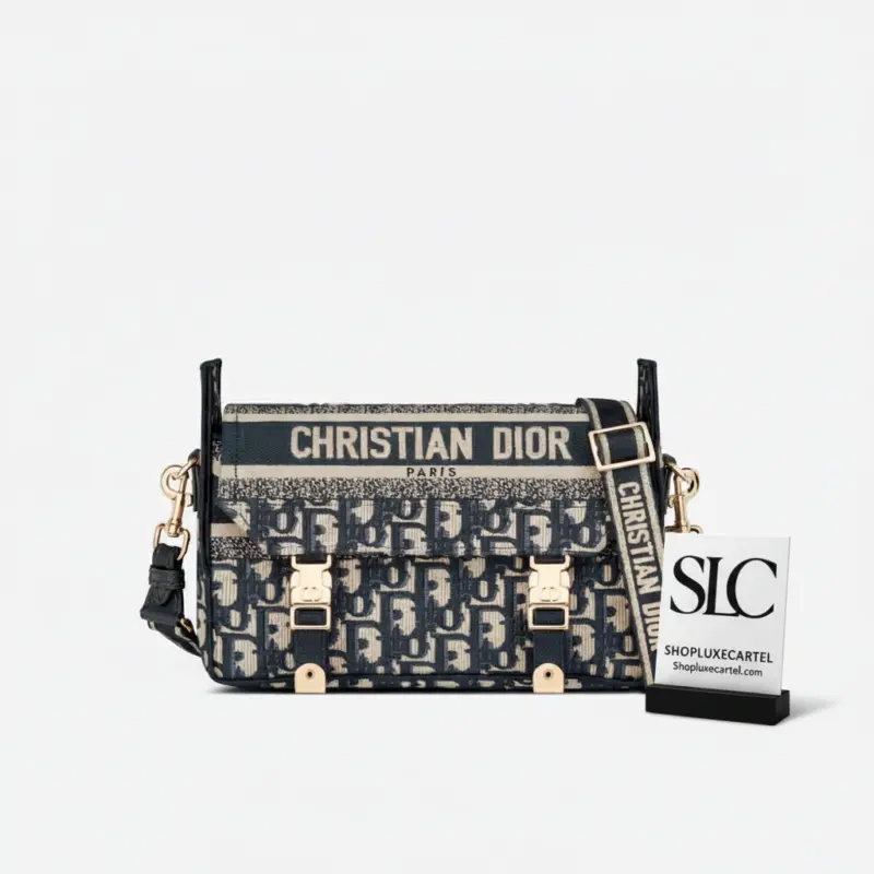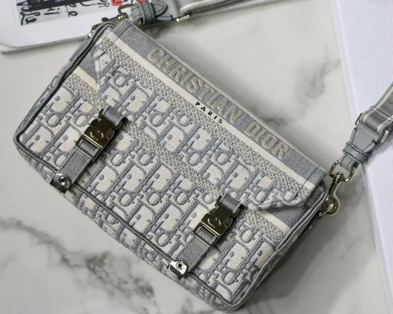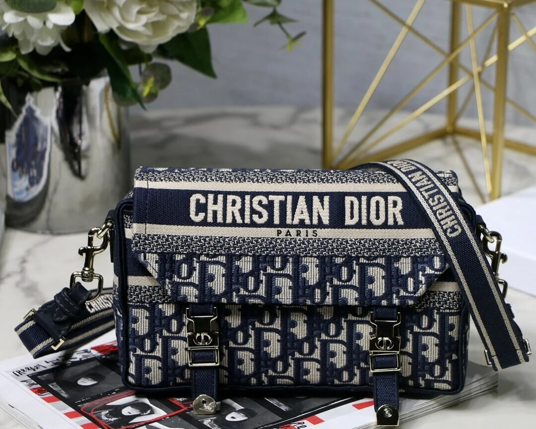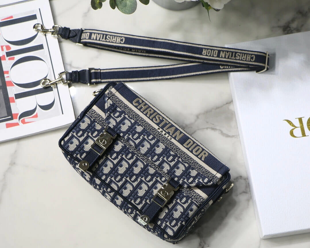 This classic messenger bag is reimagined with a relaxed, modern aesthetic, making it an ideal urban companion. The entire bag features a striking blue oblique embroidery, creating a sophisticated and textured look that stands out. Its compact design is both stylish and practical for everyday use.