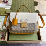 Designed for versatility, it includes both a short top handle and a detachable, adjustable shoulder strap, allowing it to be carried in multiple ways. The polished gold-toned hardware and a petite leather key case complete the refined look, making it a perfect accessory for any occasion.
