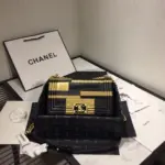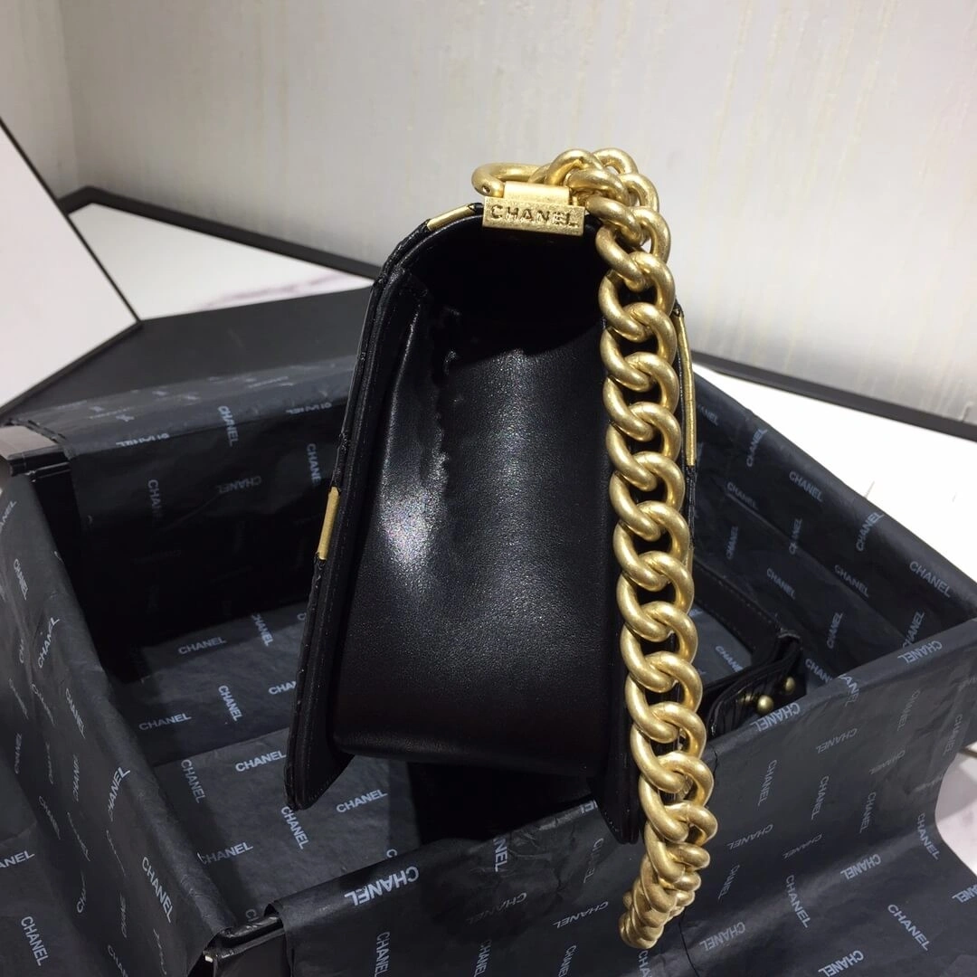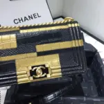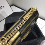 Small Quilted Boy Style Flap Shoulder Bag Gold/Black A67085