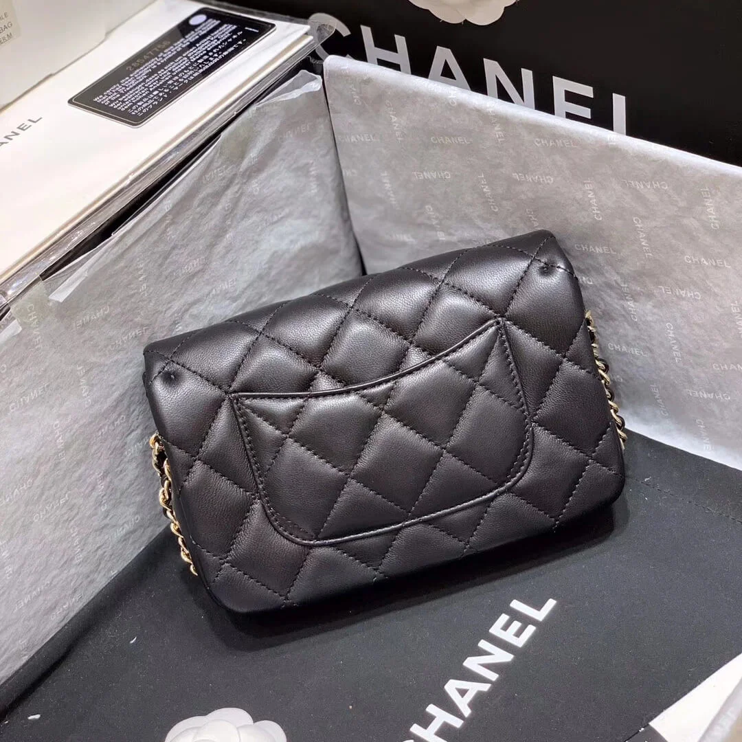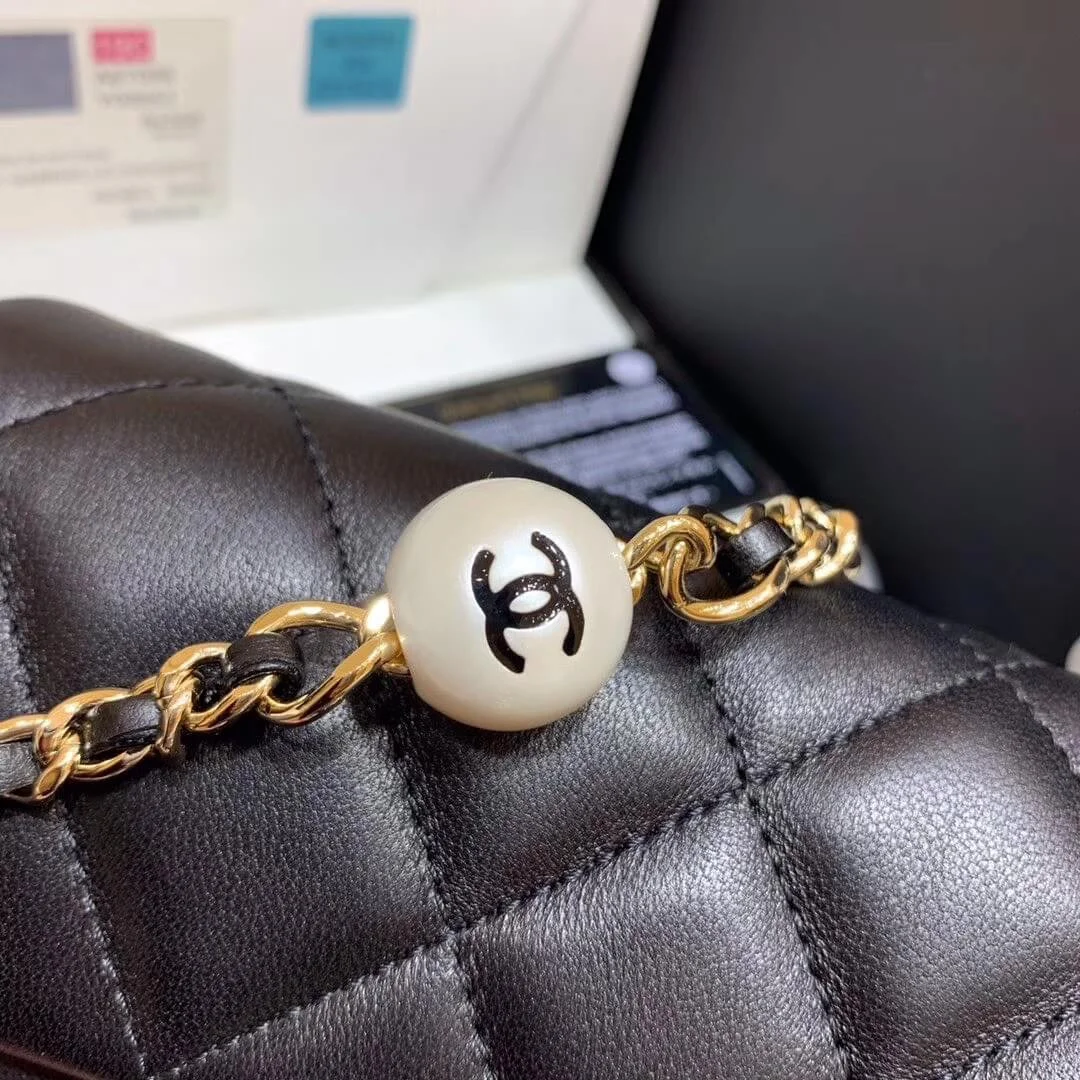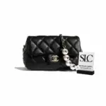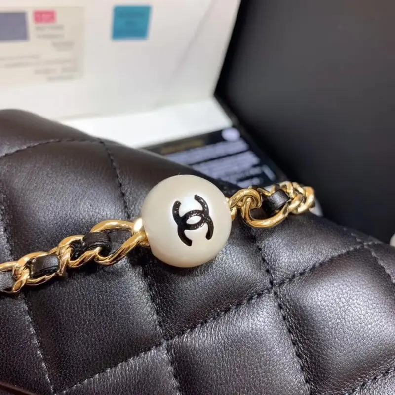 Small Quilted Flap Bag with Pearl Logo Strap AS1436