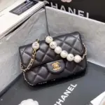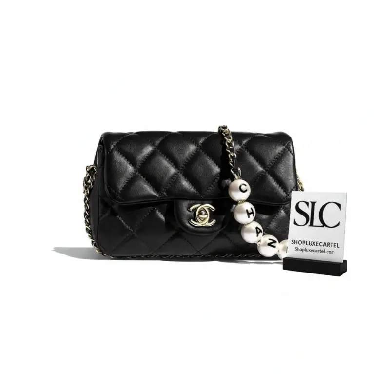 What truly sets this piece apart is its stunning shoulder strap. A polished, interwoven chain is beautifully enhanced with five decorative pearls, which artfully spell out a chic five-letter word, creating a unique and eye-catching detail. This bag is a distinctive collector’s item for those who appreciate exquisite craftsmanship and standout design.