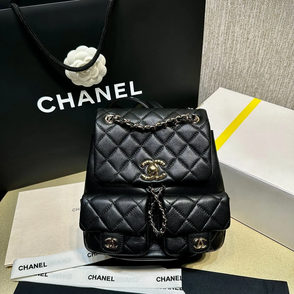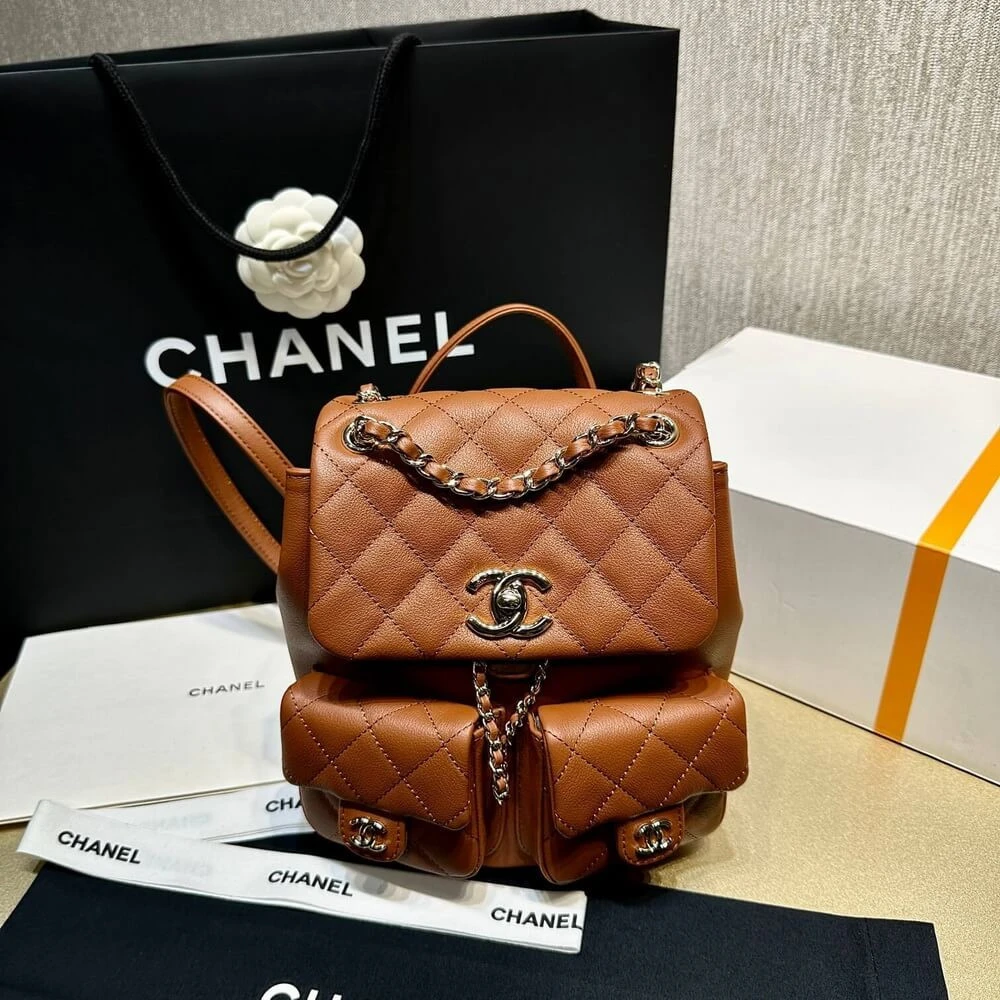 Discover the perfect blend of timeless style and modern functionality with this beautifully crafted quilted leather backpack. Designed for the discerning traveler, its compact size and sophisticated silhouette make it an ideal companion for daily commutes, weekend getaways, and city adventures. The luxurious calfskin leather and polished silver-tone hardware create an effortlessly chic look that complements any wardrobe.