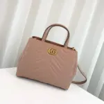 Experience timeless elegance with this beautifully crafted top handle bag, designed with a sophisticated, softly structured silhouette. The exterior is rendered in luxurious matelasse leather with a classic quilted finish, complemented by refined, aged gold-toned hardware for a touch of vintage charm. Its versatile design makes it an ideal accessory for elevating both day and evening ensembles.