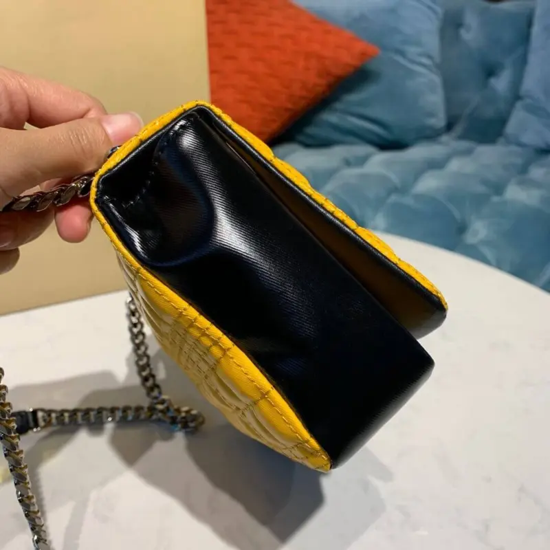- Adjustable chain and lambskin shoulder strap