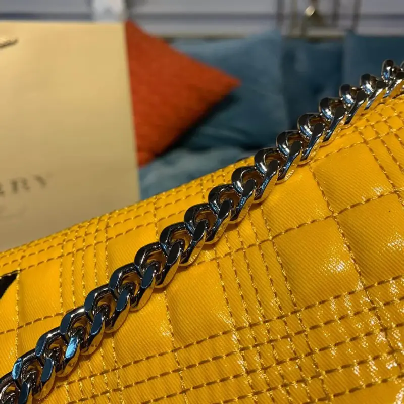This softly structured runway bag is elegantly crafted from quilted, print-coated cotton for a modern and sophisticated look. The style is highlighted by a polished chain strap, allowing it to be worn on the shoulder or adjusted for a crossbody fit, offering versatile styling options.