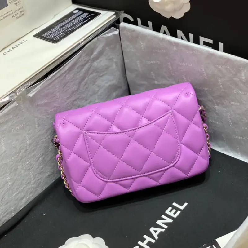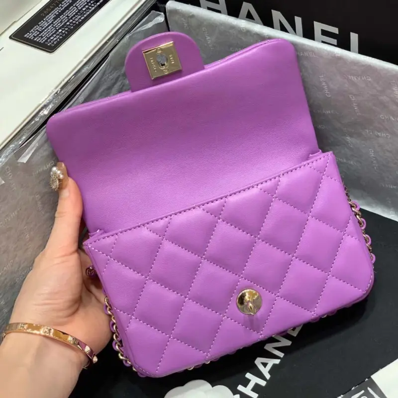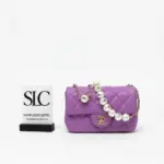 Discover a timeless accessory designed for the modern fashion enthusiast. This beautifully crafted shoulder bag features a classic quilted design, exuding an air of sophisticated elegance. The rich purple hue offers a bold yet graceful statement, making it a versatile addition to any wardrobe. An eye-catching chain strap, interwoven with leather and accented by lustrous pearls, adds a unique and luxurious touch to its structured silhouette.