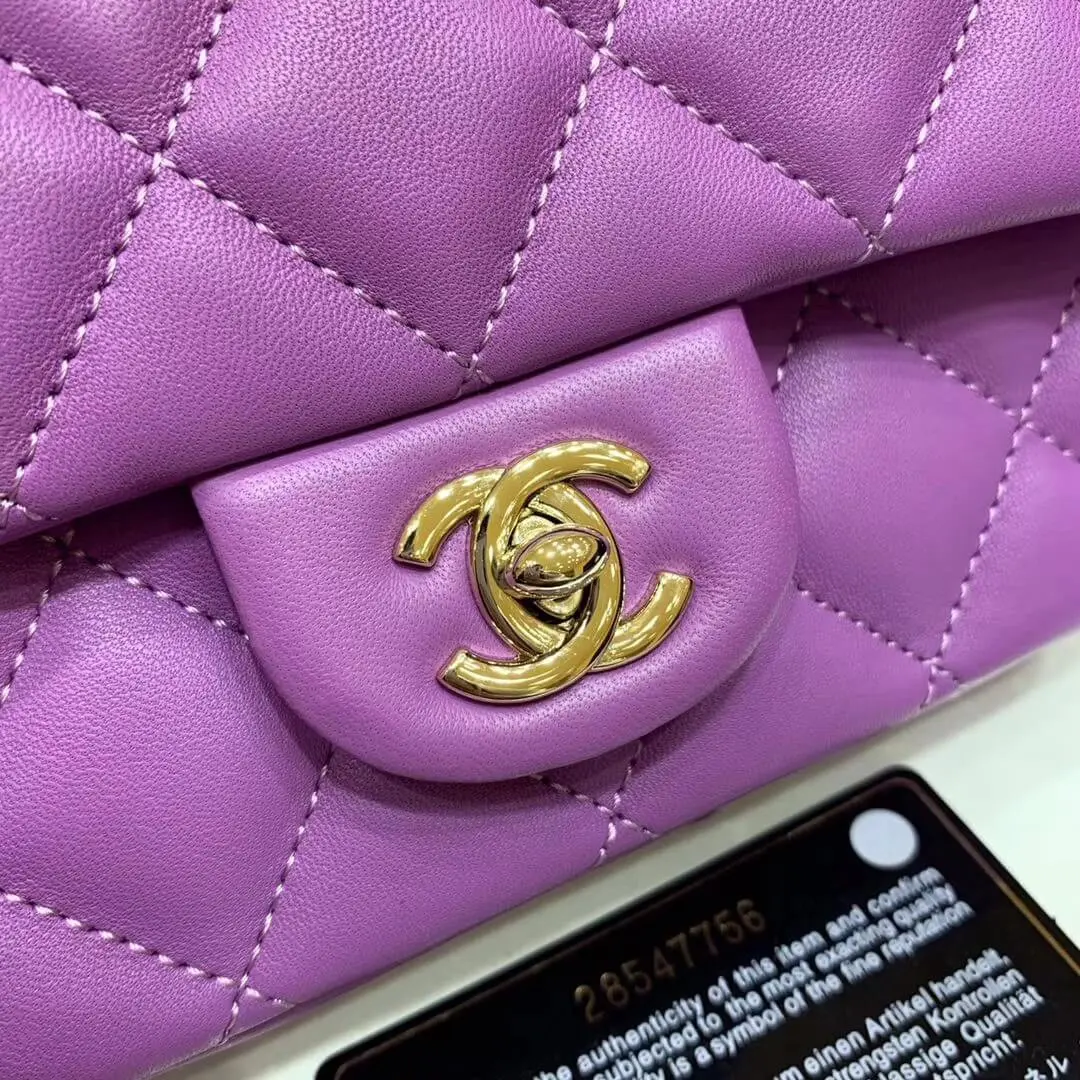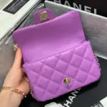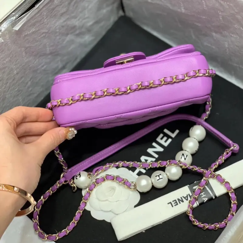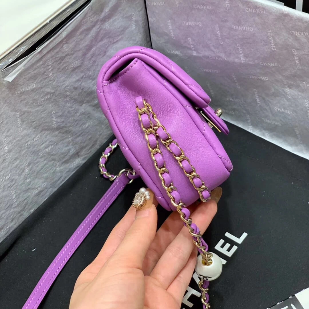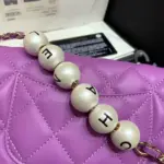 Small Quilted Shoulder Bag with Pearl Strap Purple AS1436