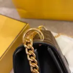 The bag’s interior is just as thoughtfully designed, lined with soft suede and organized into double gusseted compartments that provide ample space and easy access to your belongings. A sliding metal chain strap, complete with a comfortable leather shoulder rest, allows for versatile wear, either on the shoulder or crossbody. The flap top is secured with a distinctive metal snap closure, ensuring your essentials are kept safe in style.