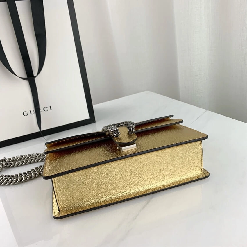 Small Tiger Clasp Shoulder Bag in Shimmering Gold Leather 499623