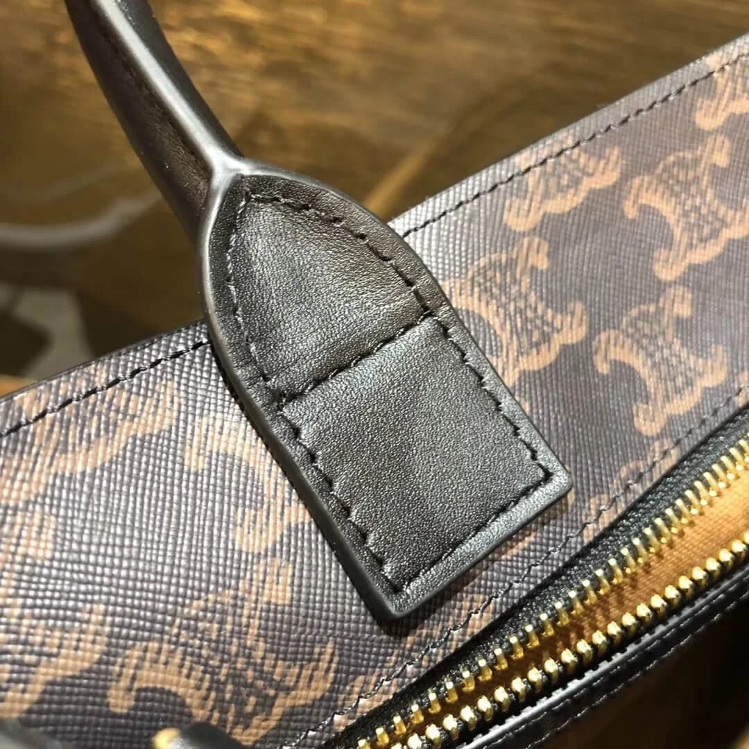 Discover your new go-to accessory with this impeccably designed vertical tote bag. Featuring a striking monogram print on durable coated canvas, this bag combines timeless style with everyday functionality. Its structured, north-south silhouette offers a modern look, while the contrasting leather trim adds a touch of refined elegance. Perfect for organizing your essentials, this bag is designed to move with you from morning meetings to evening outings.