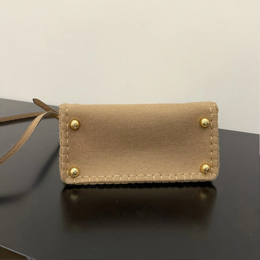 Discover a timeless accessory crafted from soft, luxurious beige flannel. This small top handle bag is defined by its distinctive, oversized metal handles, which add a touch of modern sculpture to its classic silhouette. The structured design offers a sophisticated look perfect for any occasion.
