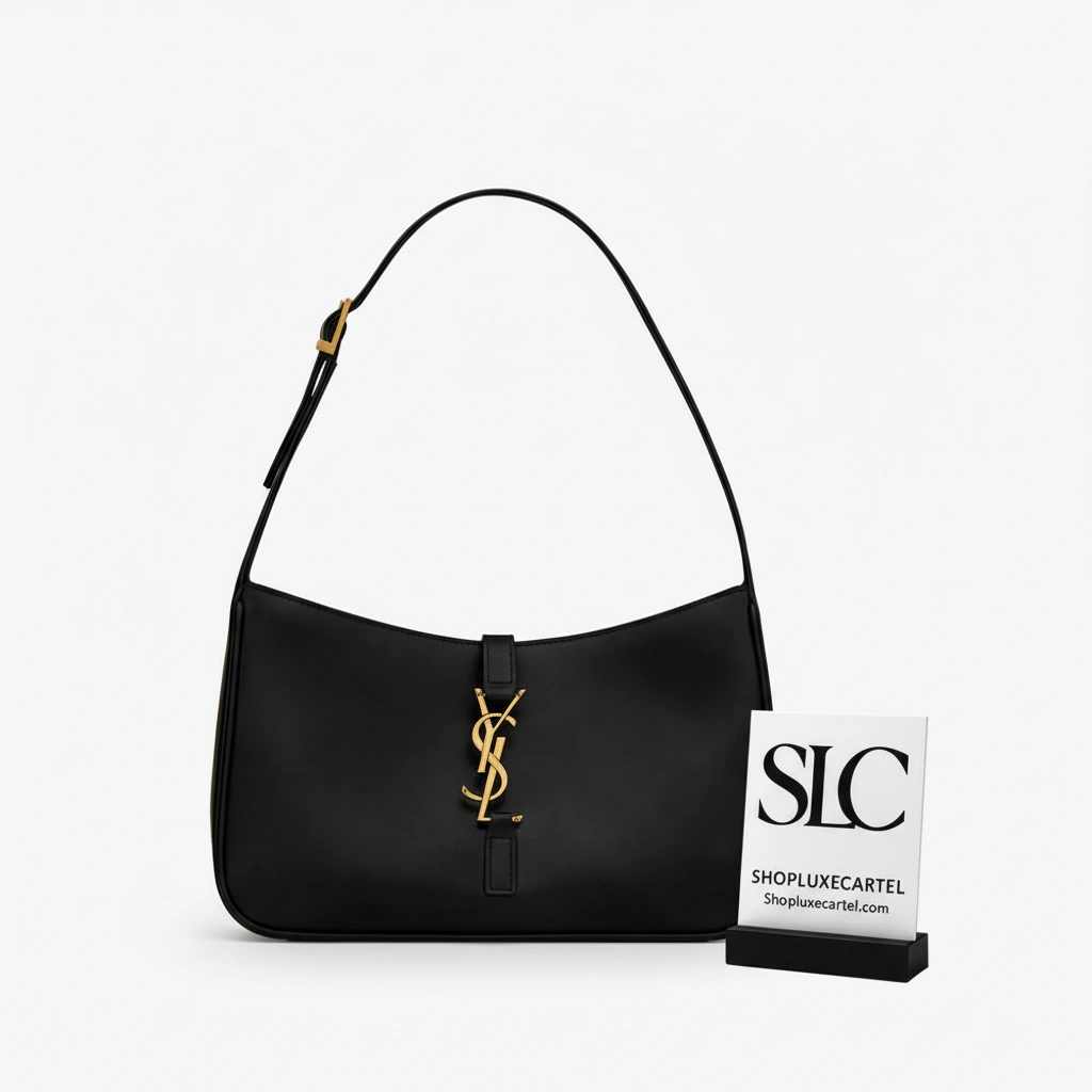 This hobo-style shoulder bag is the perfect accessory for transitioning seamlessly from the office to evening engagements. Crafted from smooth, refined leather, it presents a sleek and polished silhouette. Its compact design is perfectly proportioned to hold all your essential items without being cumbersome.