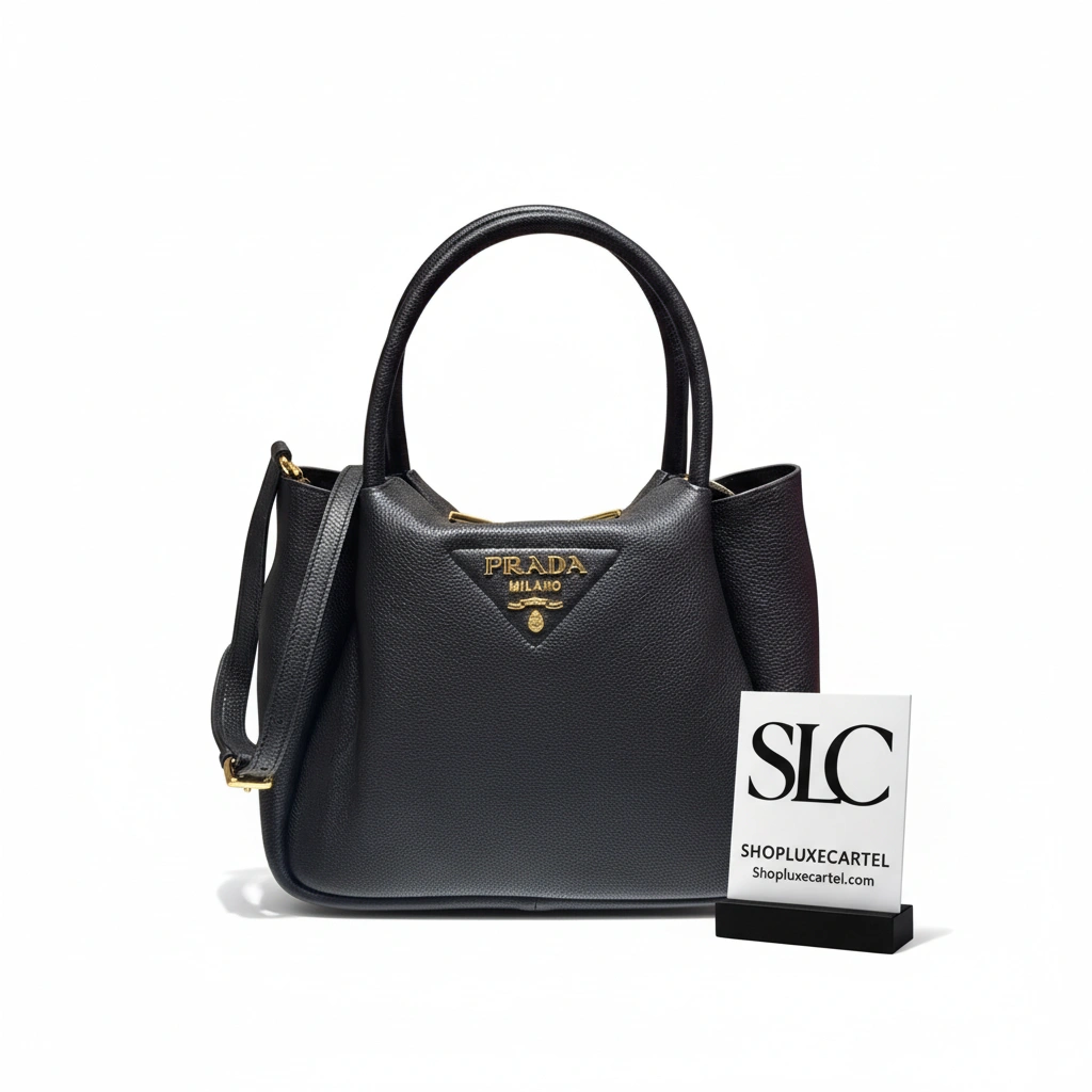 The dual leather handles are designed for a comfortable carry, completing this versatile and elegant tote. Inside, a central compartment and two pockets provide ample storage, while polished metal hardware adds a refined finishing touch.
