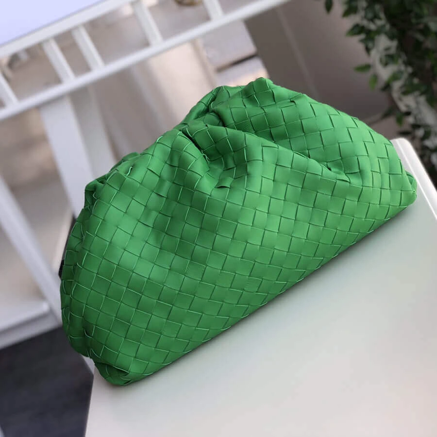 Soft Gathered W woven Leather Dumpling Pouch Clutch Bag 576175