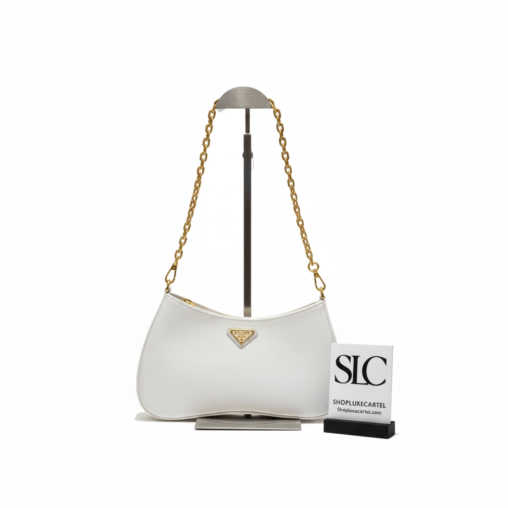 Discover a blend of contemporary elegance and relaxed sophistication with this beautifully crafted hobo bag. Made from exceptionally soft, padded nappa leather, this bag features a slouchy, crescent silhouette that offers a modern and minimalist appeal. The design is elevated by a polished metal chain, adding a touch of refined shine to its understated look.
