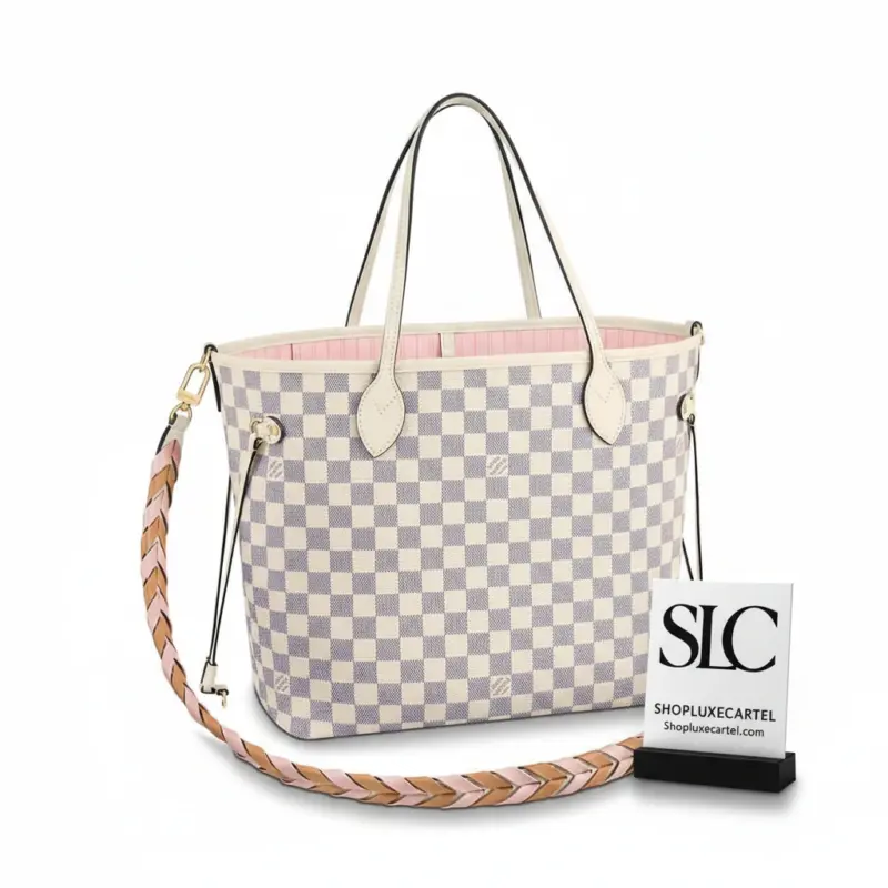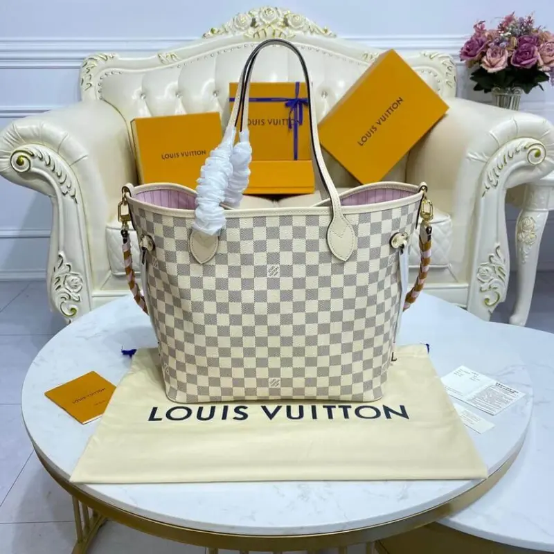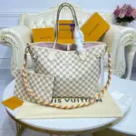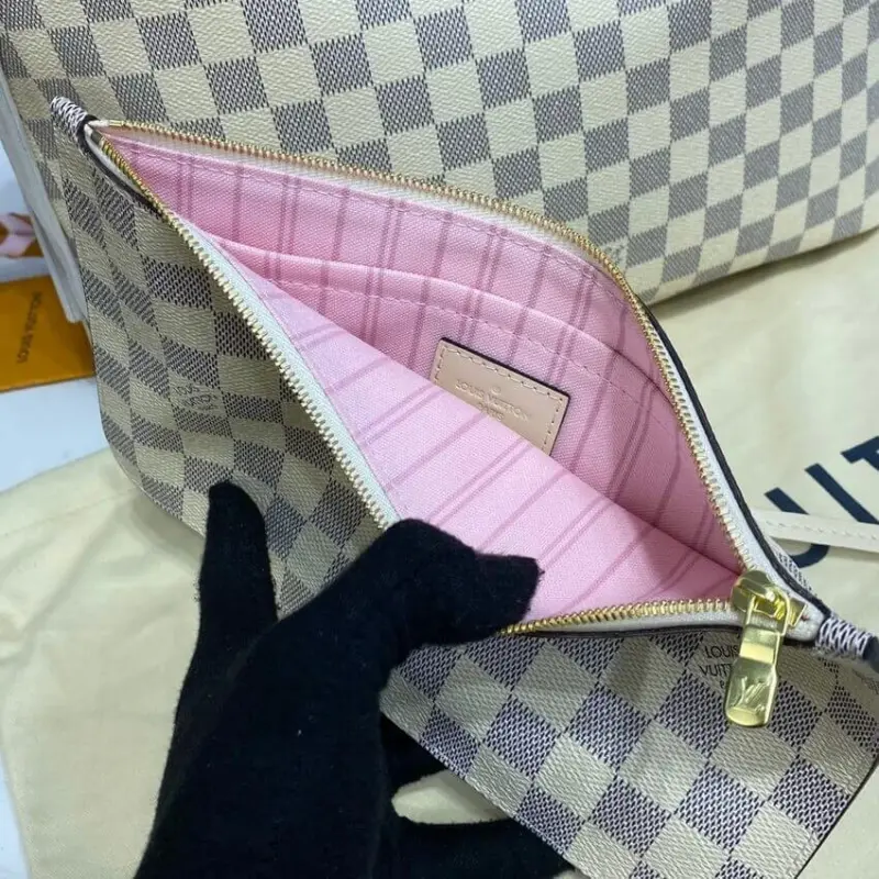 Spacious Checkered Print Shoulder Tote Bag MM N45295 Pink