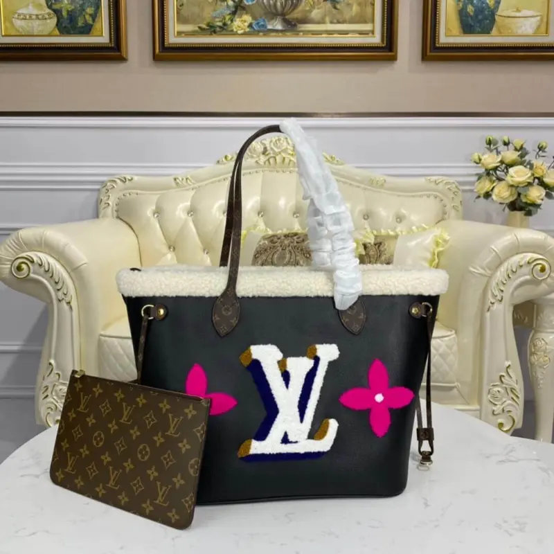 Spacious MM Tote Bag in Supple Leather and Shearling M56960