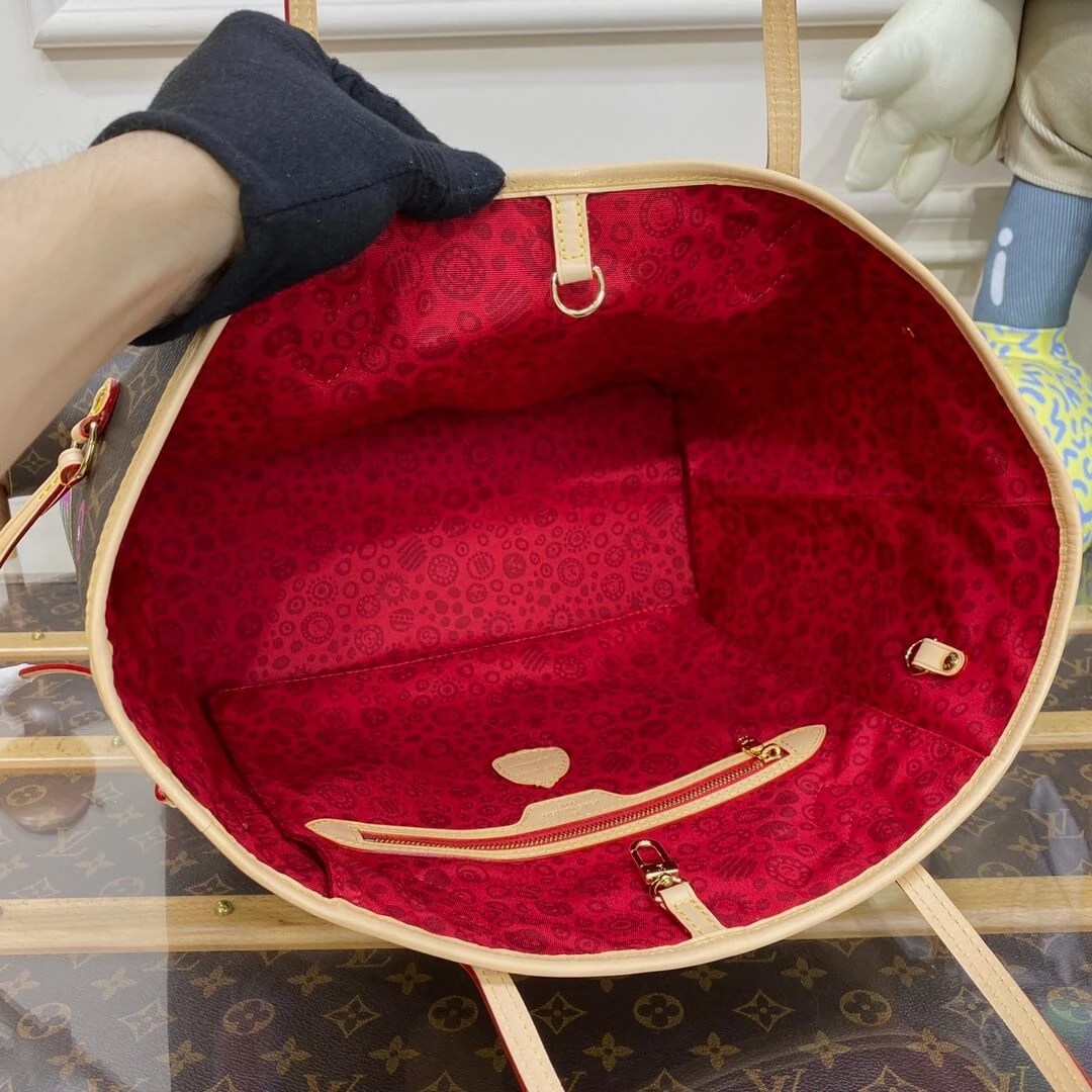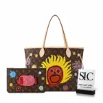 Spacious Monogram Tote Bag with Faces Print and Embroidery M46447