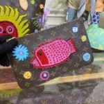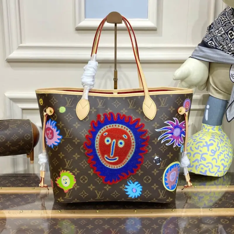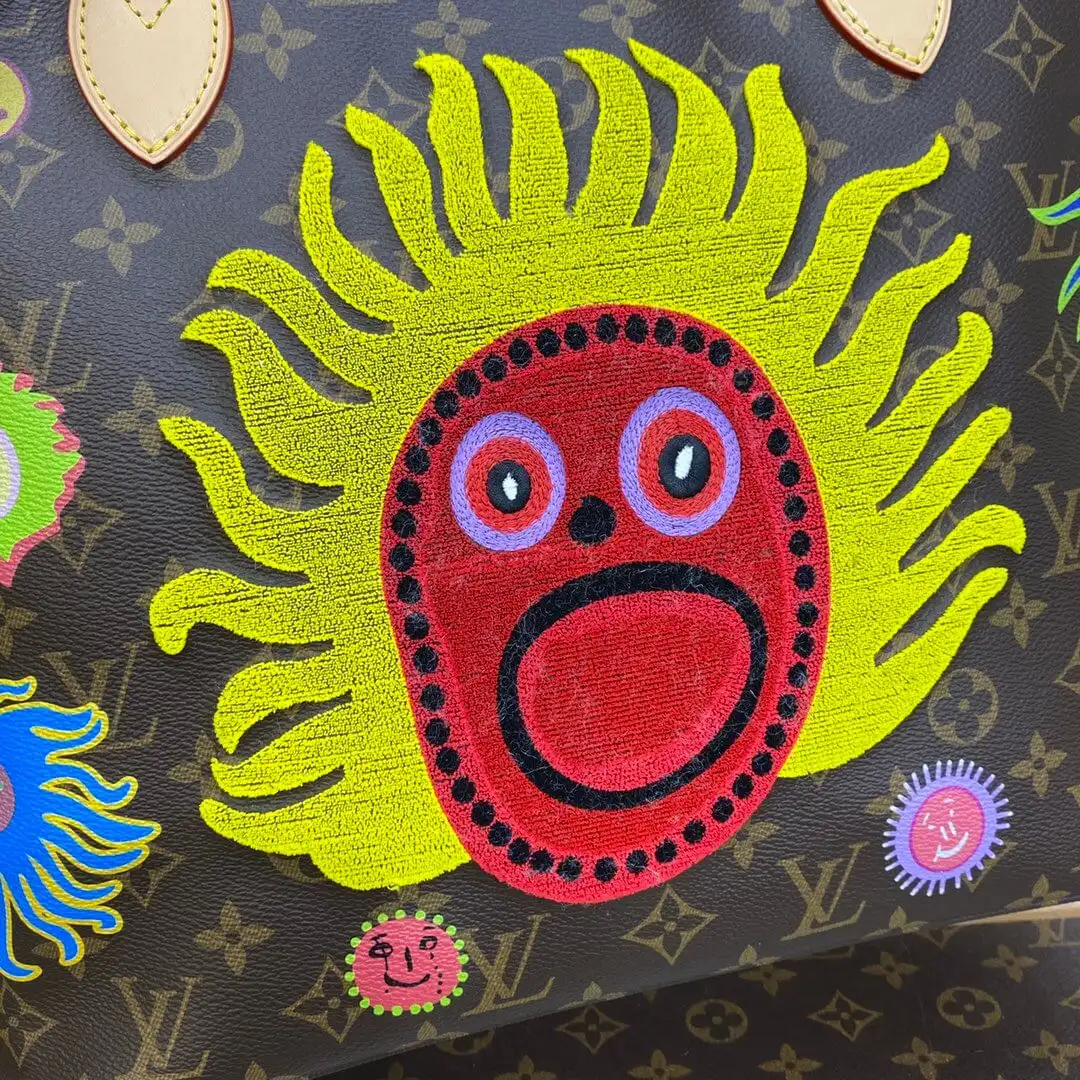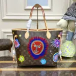 Showcasing a vibrant and artistic spirit, this spacious tote bag serves as a canvas for a colorful “Faces” motif. The lively print and detailed embroidery are set against a durable, coated canvas with a classic pattern, creating a truly unique accessory. It’s a practical and eye-catching choice for city life, gallery visits, or any occasion where you want your style to stand out.