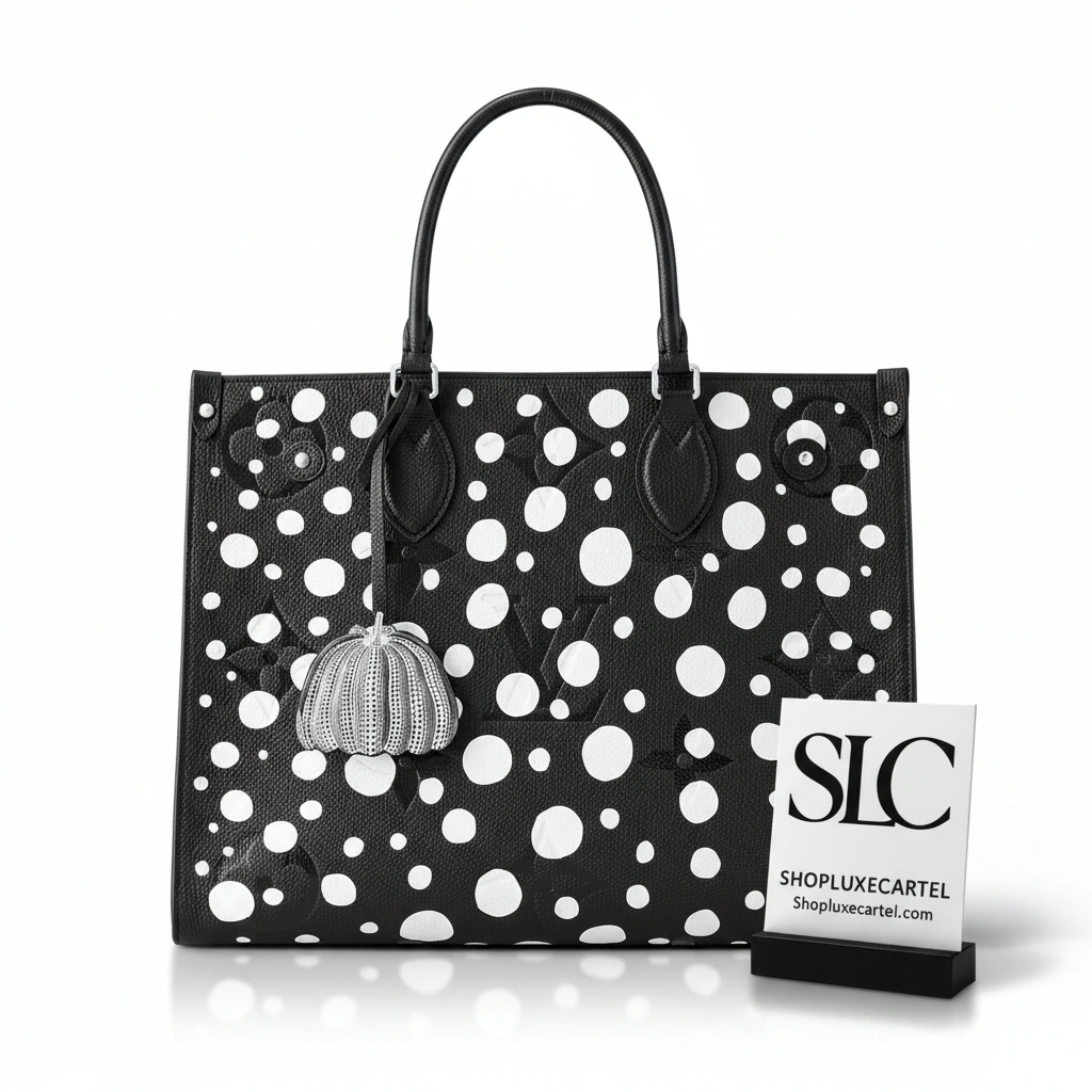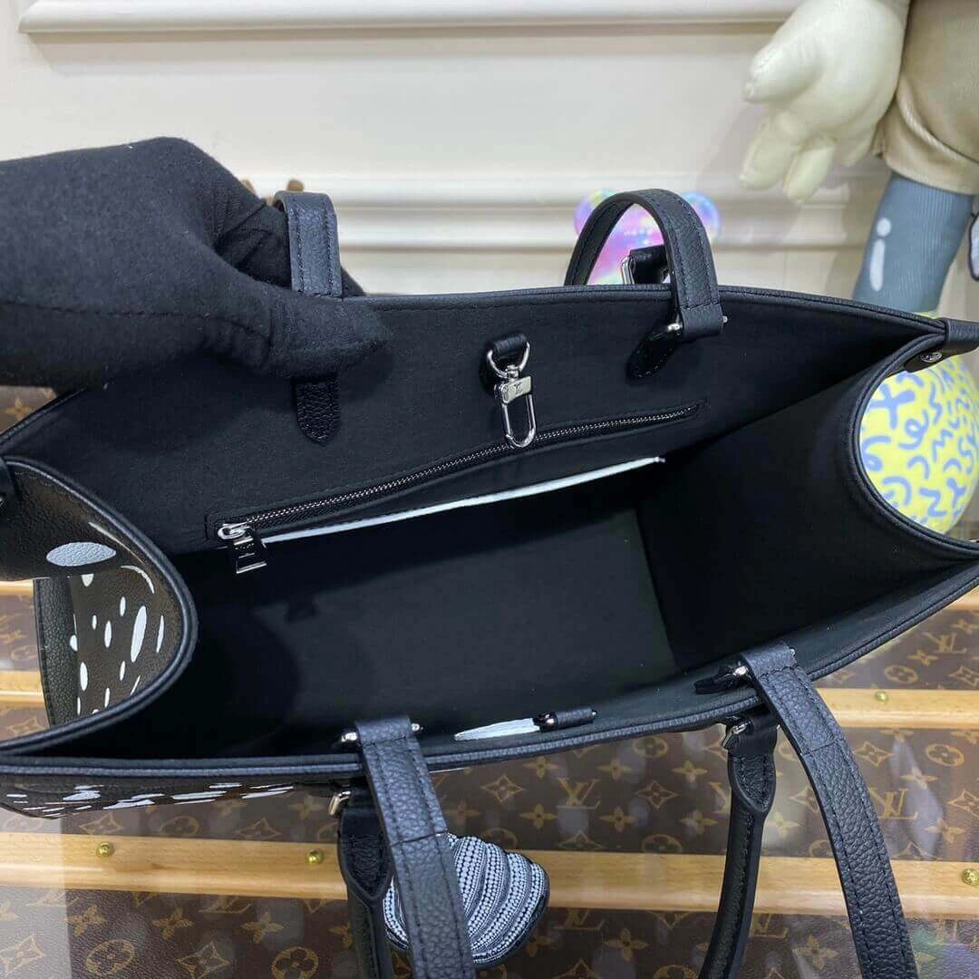 Make a bold statement with this beautifully structured tote bag, designed for both style and practicality. Its striking black and white graphic dot print on finely grained and embossed leather offers a sophisticated and modern aesthetic. The generous size makes it an ideal companion for everything from busy workdays to weekend shopping trips, ensuring you can carry your essentials with ease and elegance.