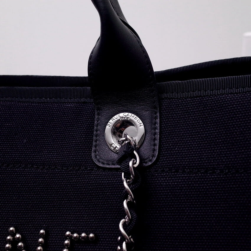 Spacious Pearl Embellished Large Canvas Shopping Tote A66941