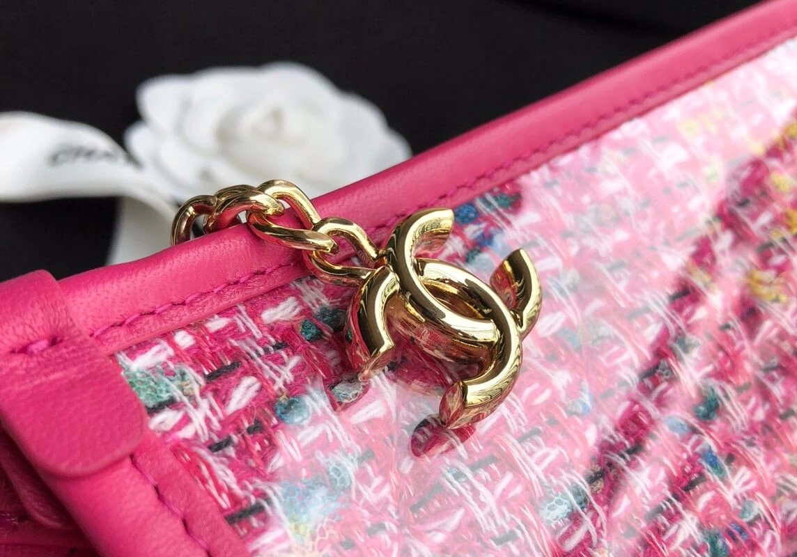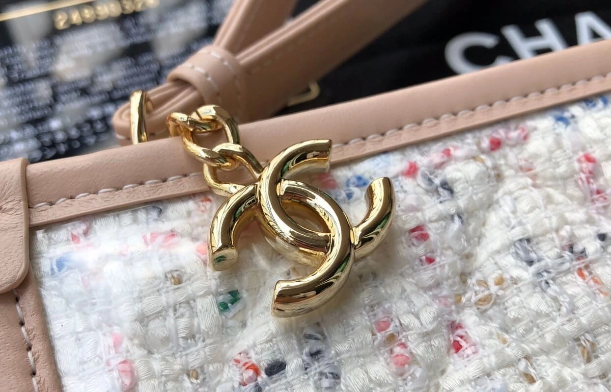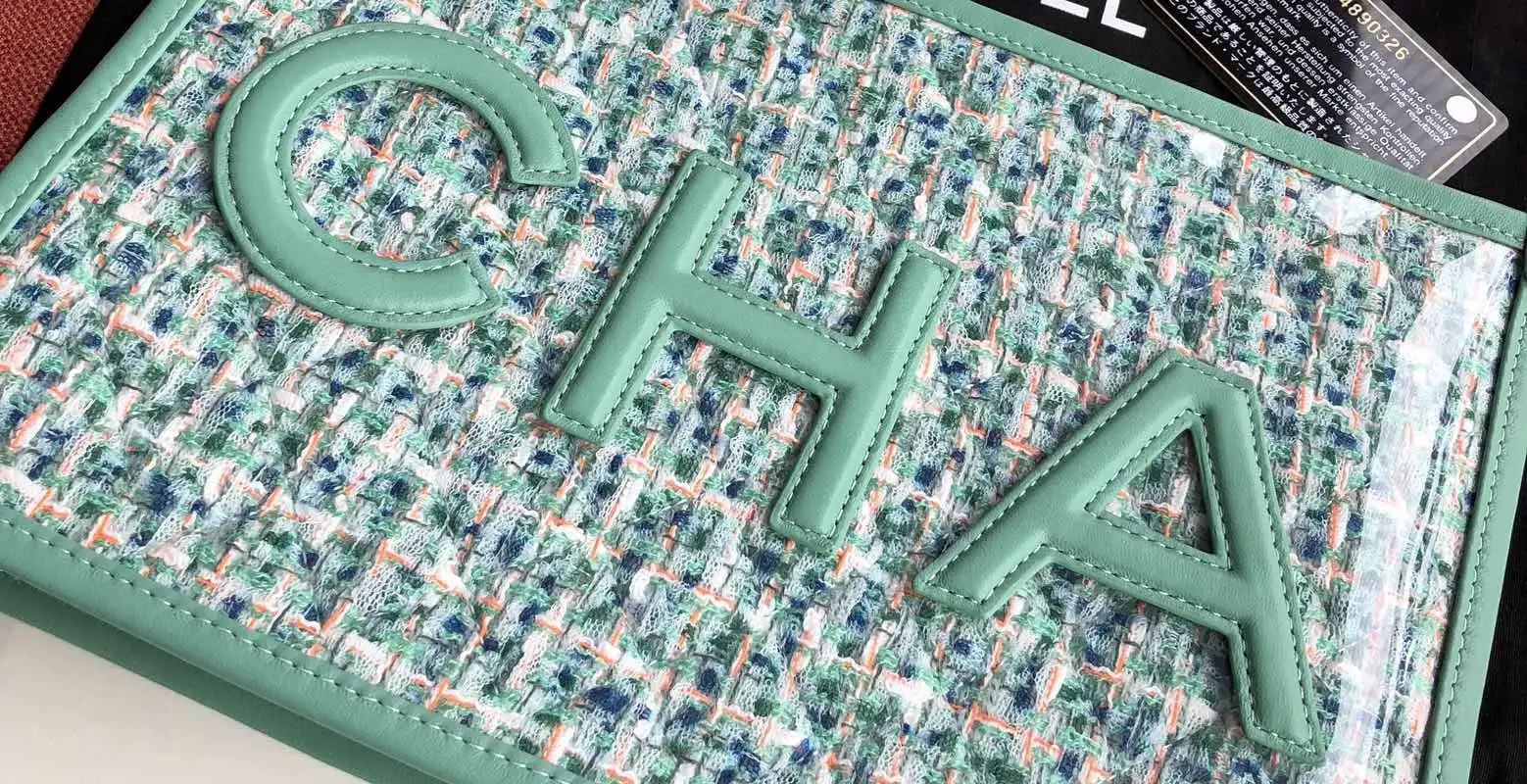 - Material: Multi-colored tweed fabric with a transparent PVC overlay