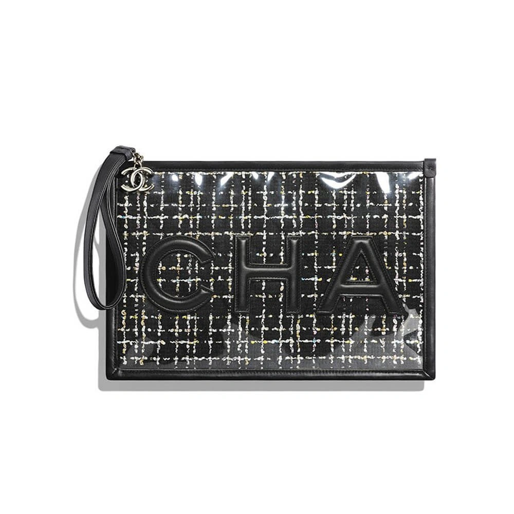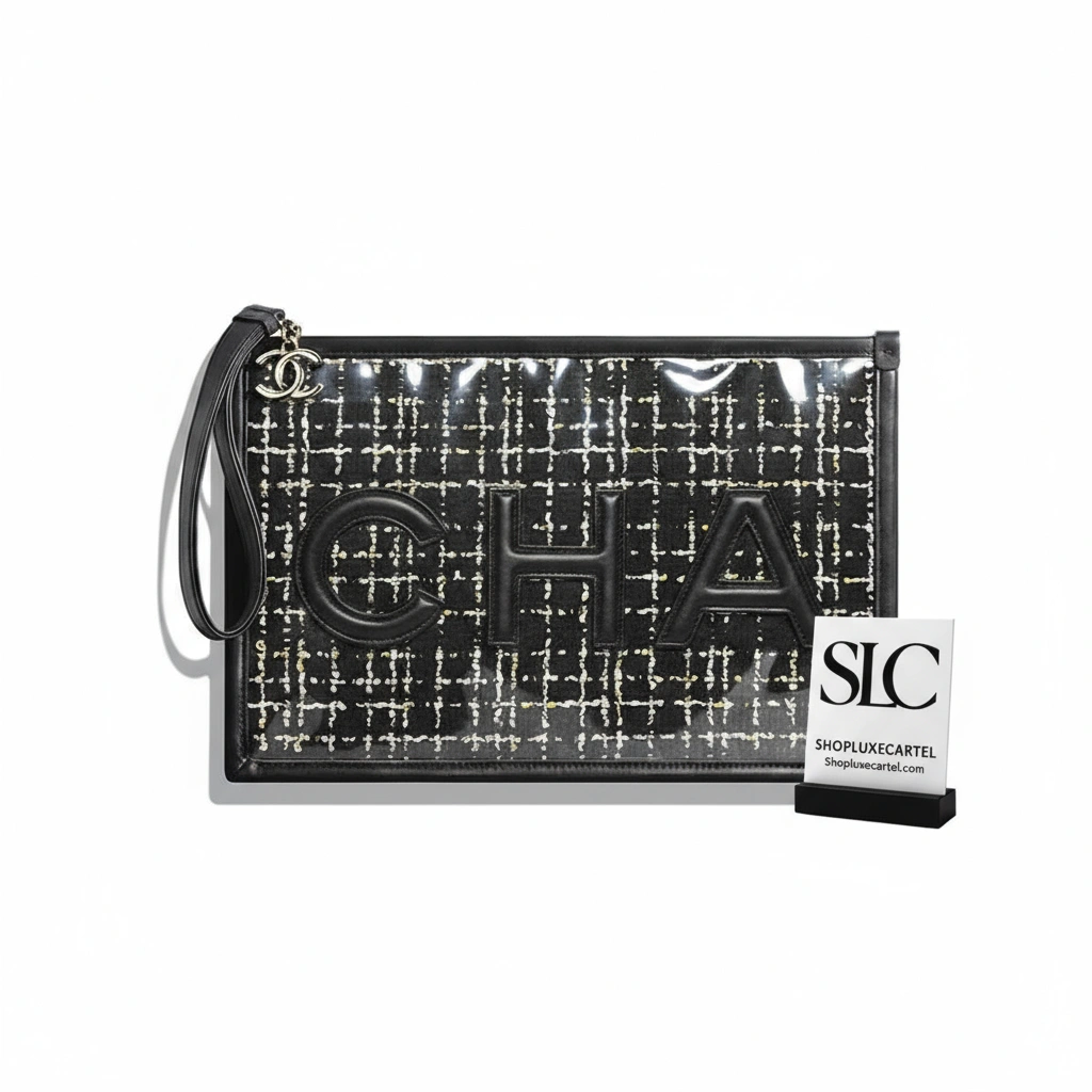 Spacious See-Through Logo Pouch in Tweed and PVC AP0360