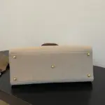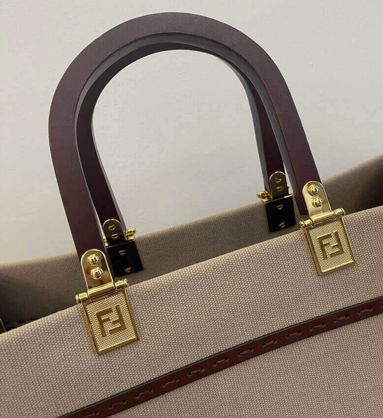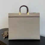 This elegant tote is thoughtfully designed with contrasting brown leather details and polished gold-finish hardware for a touch of luxury. It can be carried comfortably by the stiff leather top handles or worn over the shoulder using the detachable canvas strap, offering multiple styling options to suit your day.