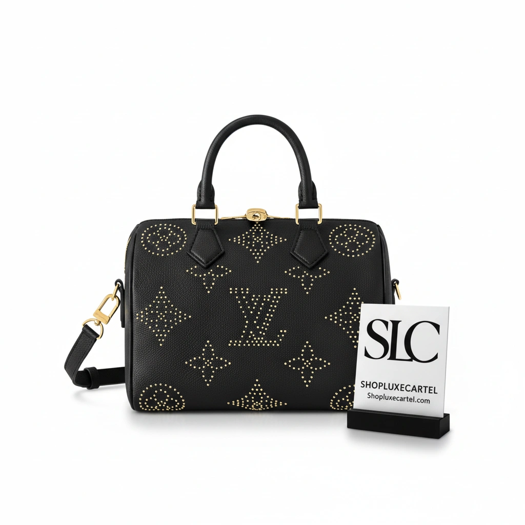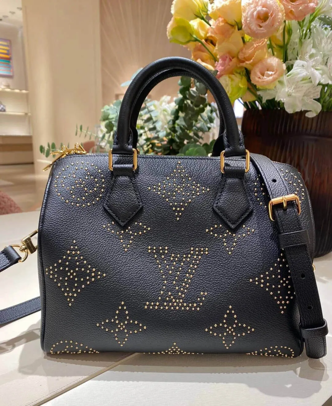 Speedy Bandouliere 25 Boston Bag in Black Studded Monogram M46736