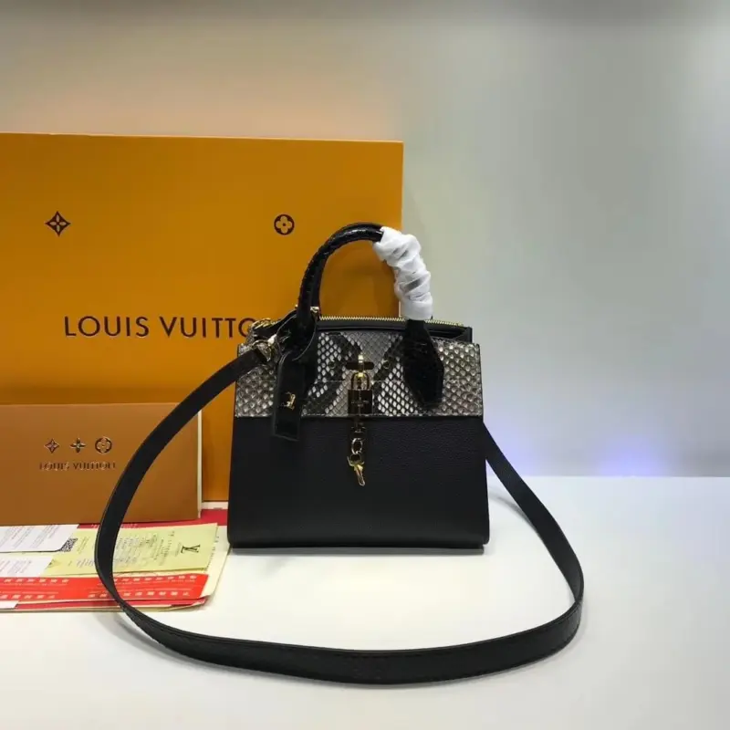 Designed with both style and versatility in mind, this satchel offers multiple carrying options to suit any occasion. It features two python-trimmed top handles for a classic hand-carry style and includes a detachable strap for comfortable shoulder or cross-body wear. The well-organized interior is equipped with multiple compartments to keep your essentials secure and easily accessible, all fastened with refined, gold-tone hardware.