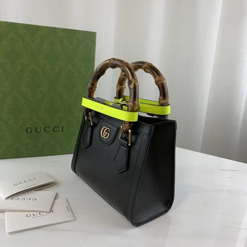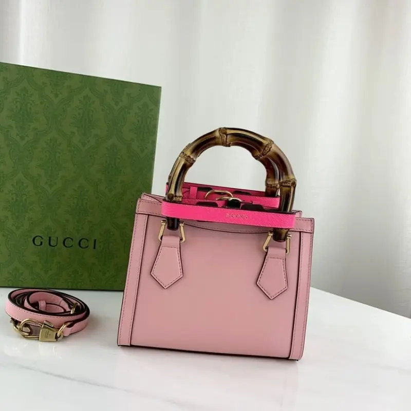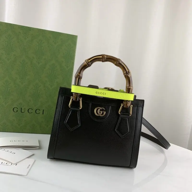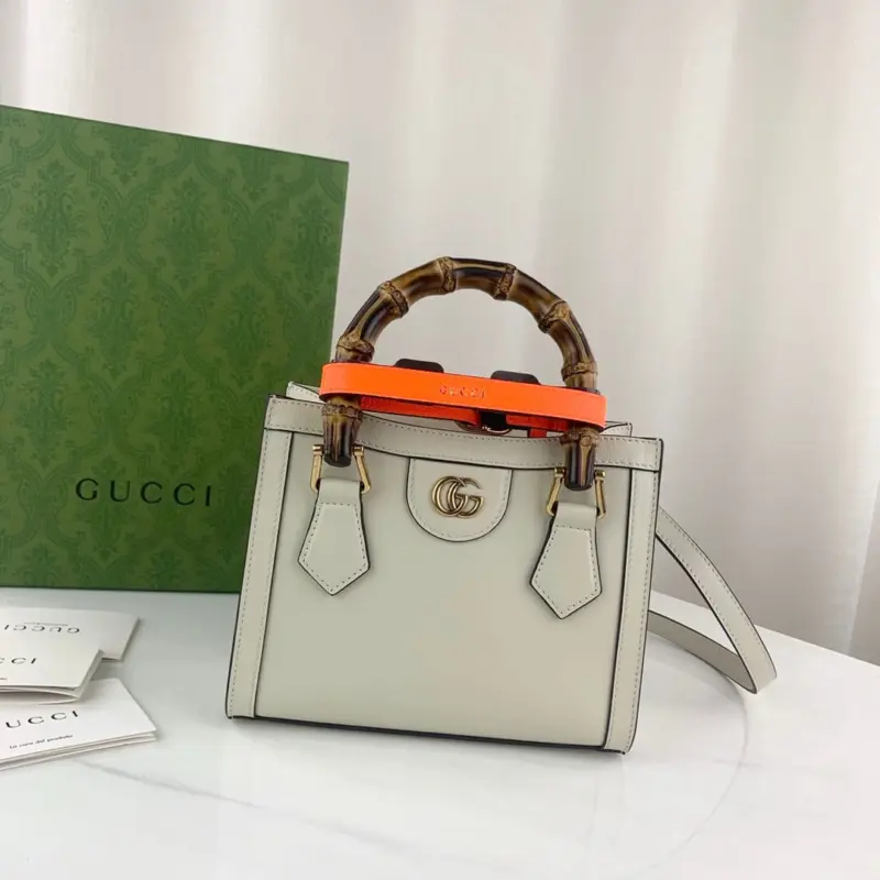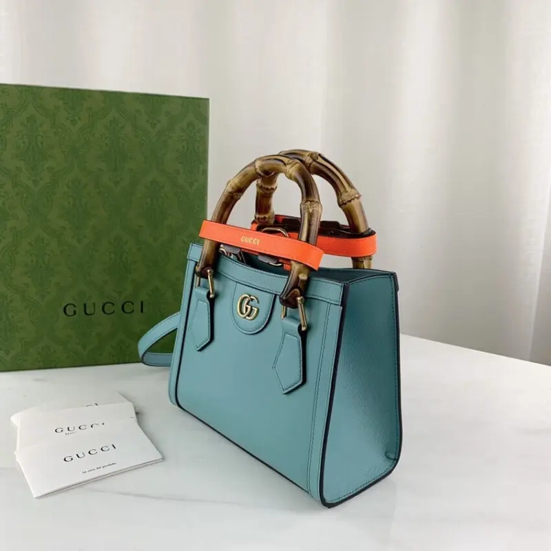 Structured Leather Diana Mini Tote with Bamboo Handles 655661