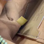 The design is accented with a distinctive gold-tone chain for a touch of contemporary style. The interior features a small flat pocket, perfectly sized for credit cards or a driver’s license, making it a versatile and practical choice for on-the-go use.