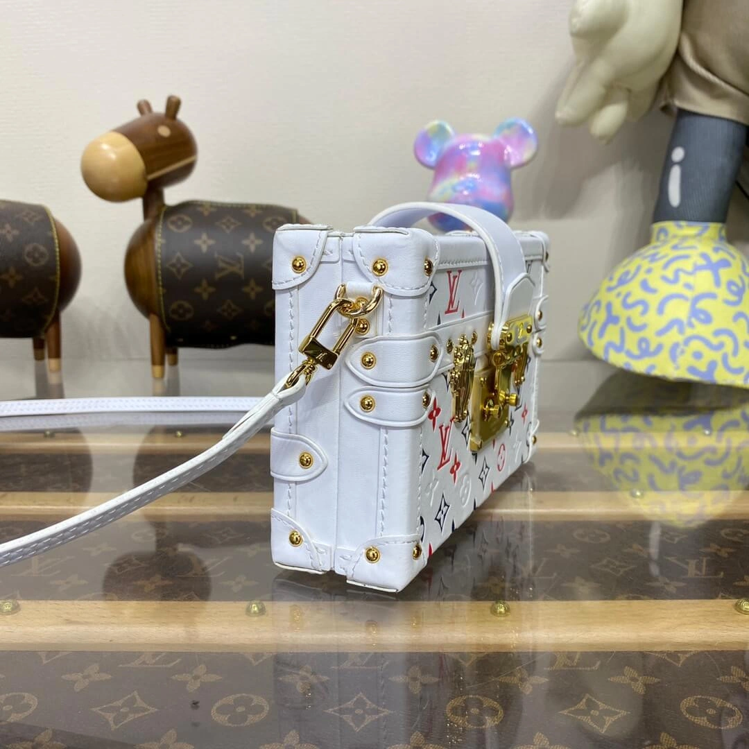 Structured Petite Malle Trunk Clutch in White Monogram Lambskin M23541