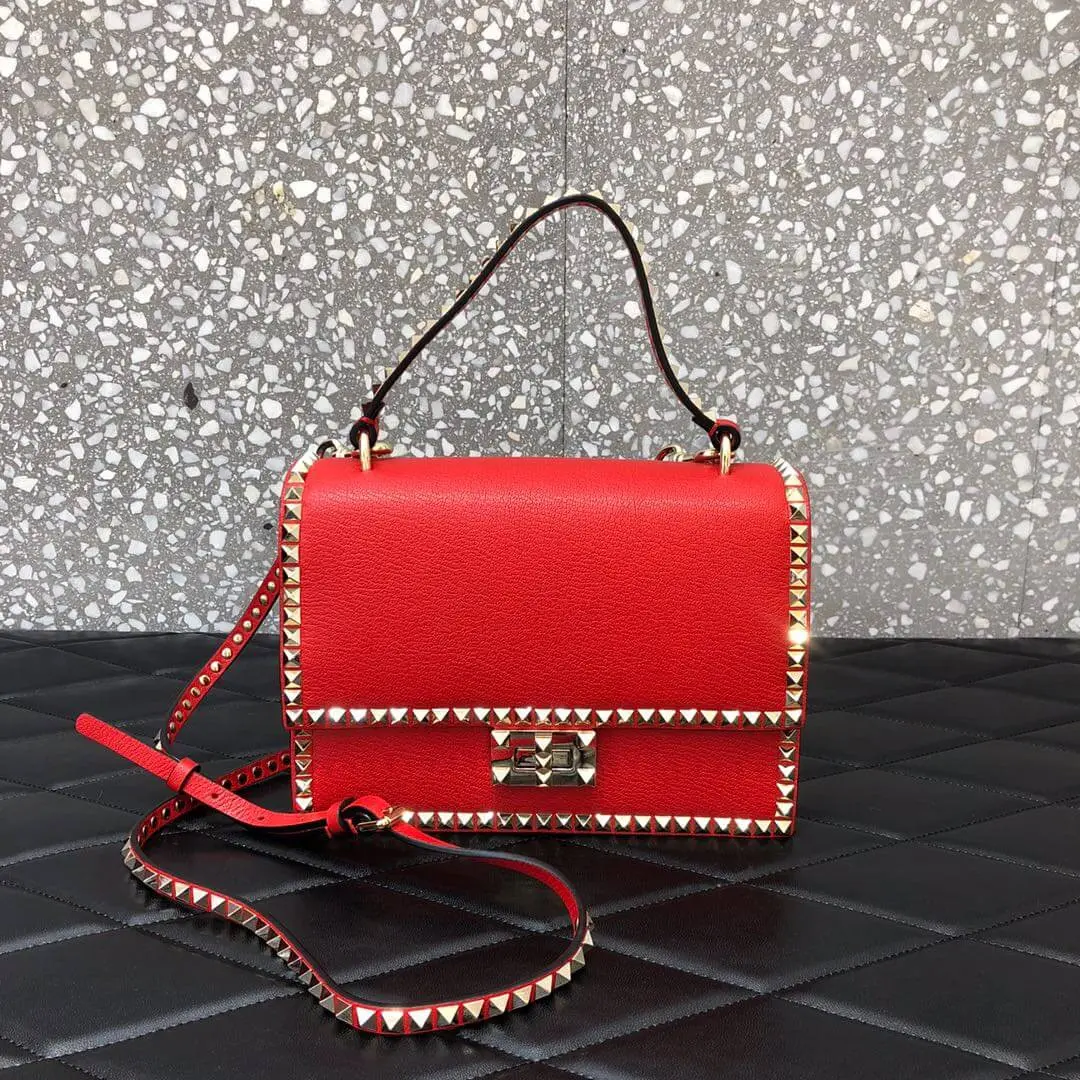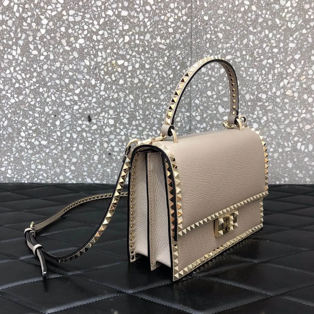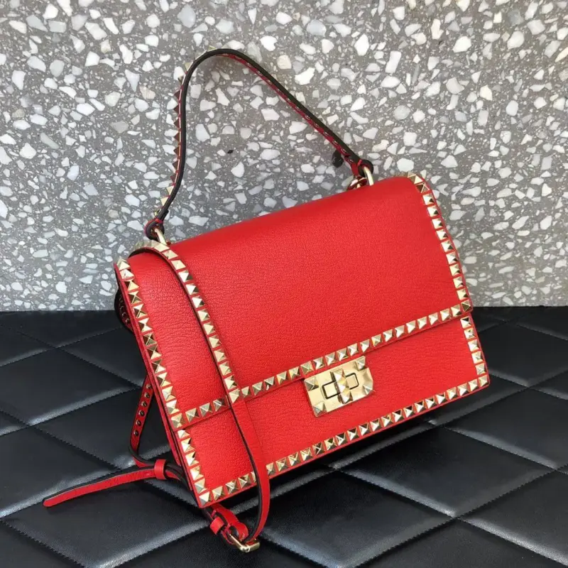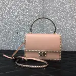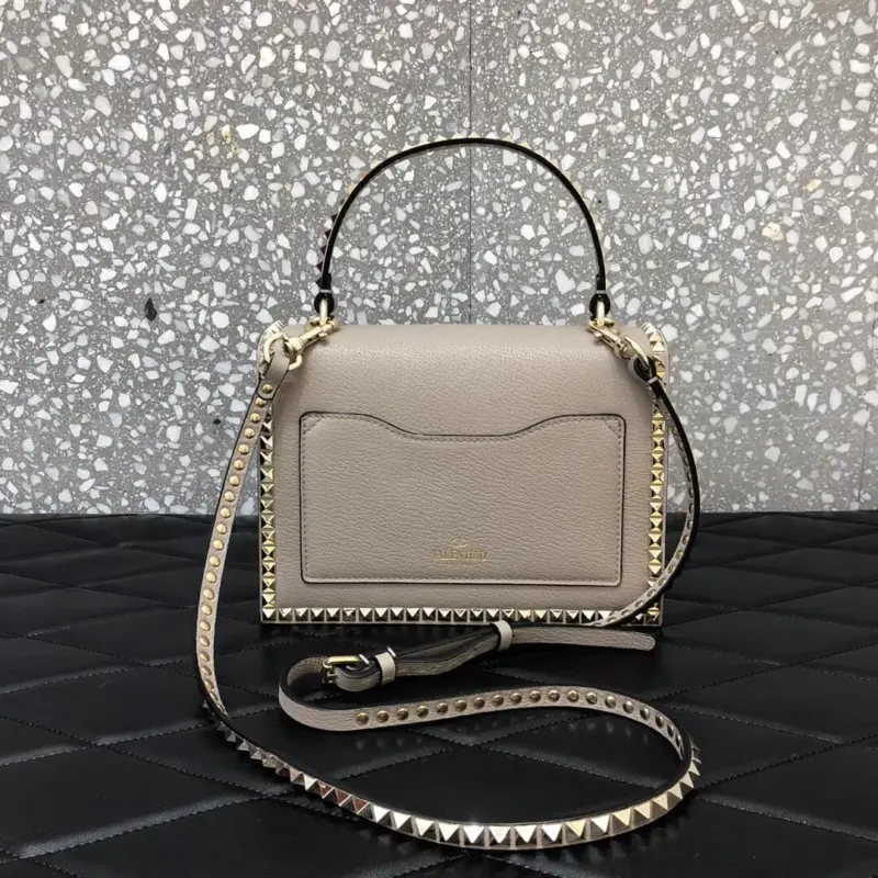 Discover a perfect blend of timeless elegance and modern edge with this exquisitely crafted top handle handbag. Designed for the discerning individual, its structured silhouette is adorned with polished pyramid studs, creating a look that is both sophisticated and daring. This versatile accessory is perfect for any occasion, effortlessly transitioning from a daytime shoulder bag to a chic evening clutch.
