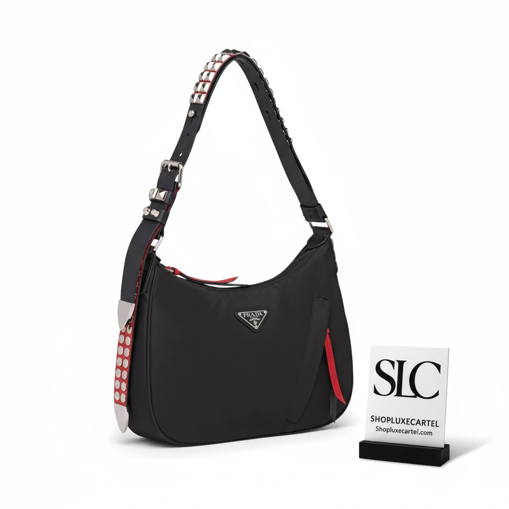Studded Nylon Hobo Bag with Supple Leather Trim 1BC087